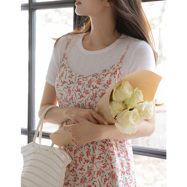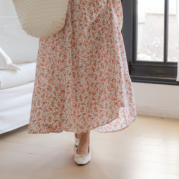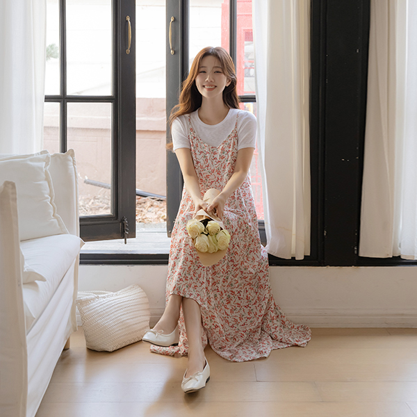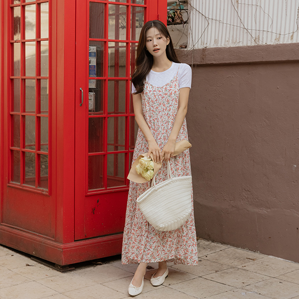 ODE 花纹 荷叶裙 背心 长款 连衣裙