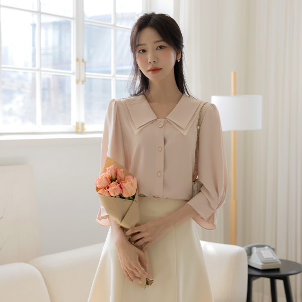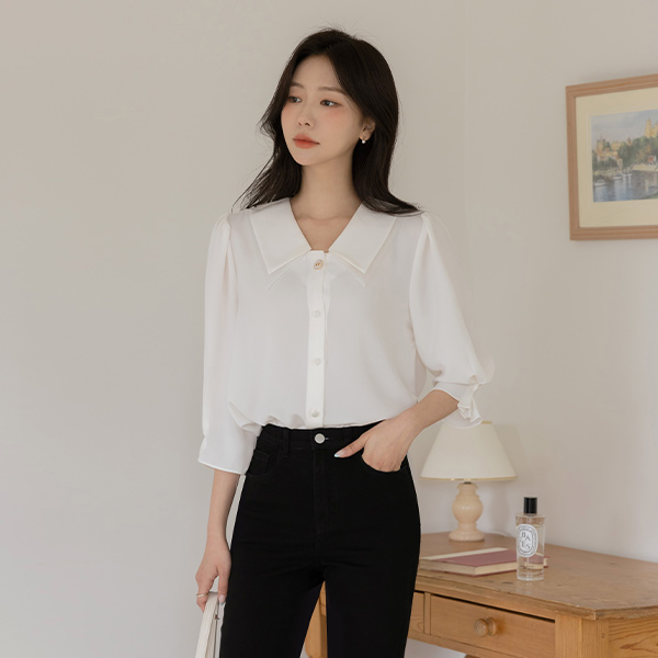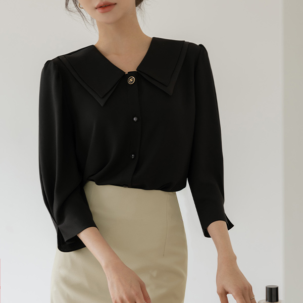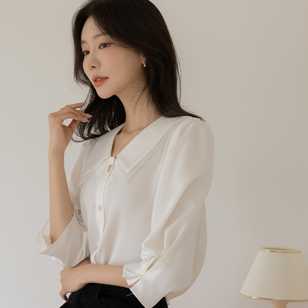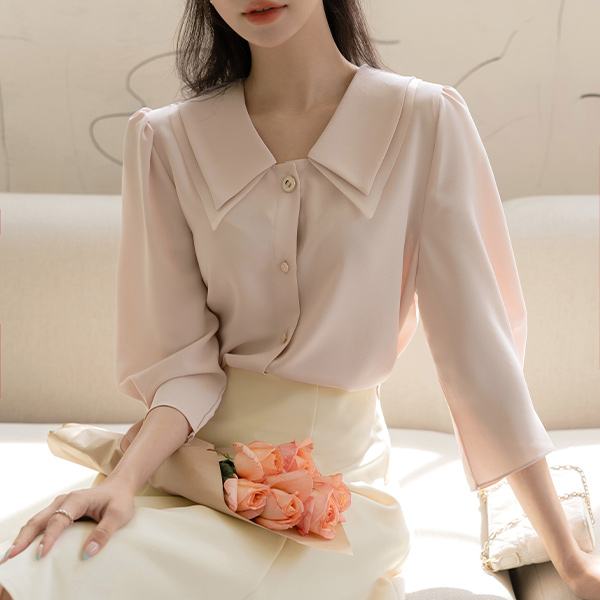 纯正 浪漫 二重 领子 泡泡袖 罩衫