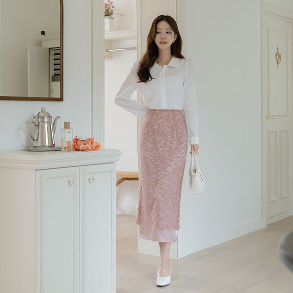 闪亮 蕾丝 分层 开衩 裙子