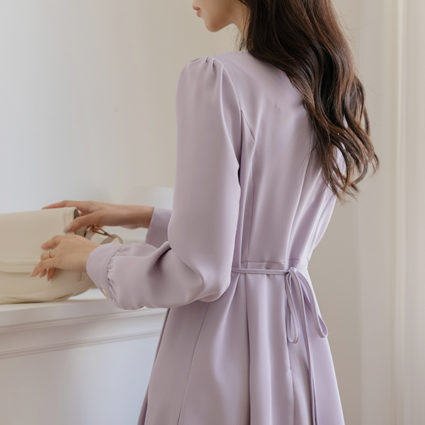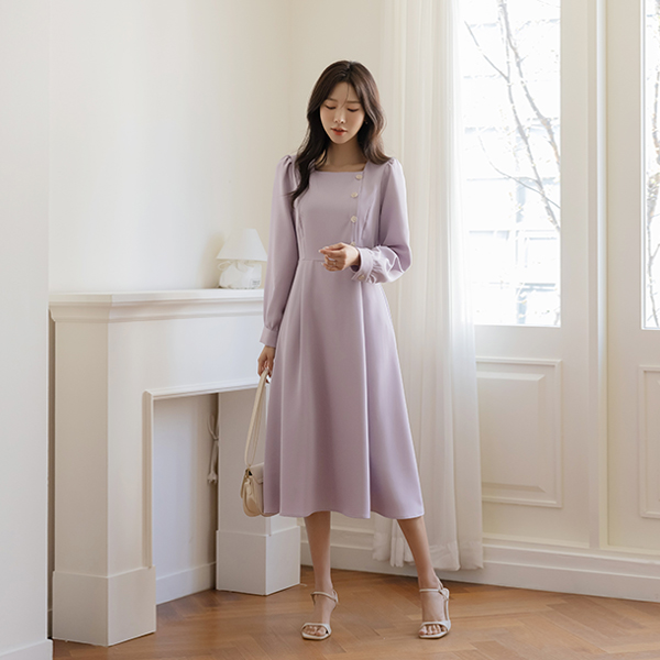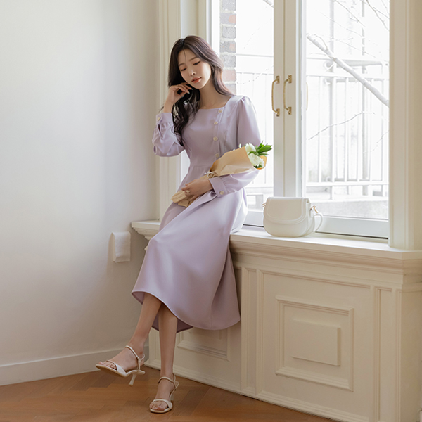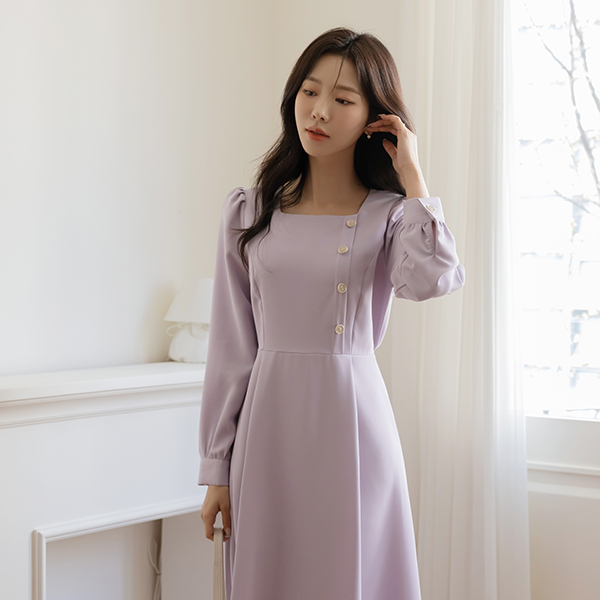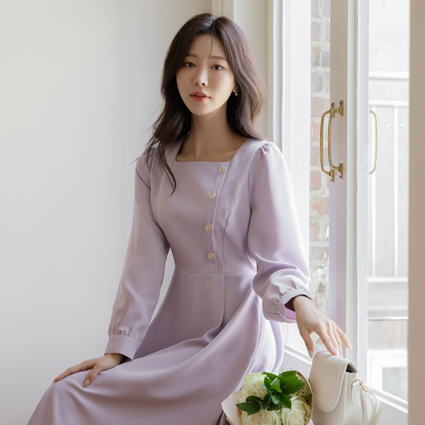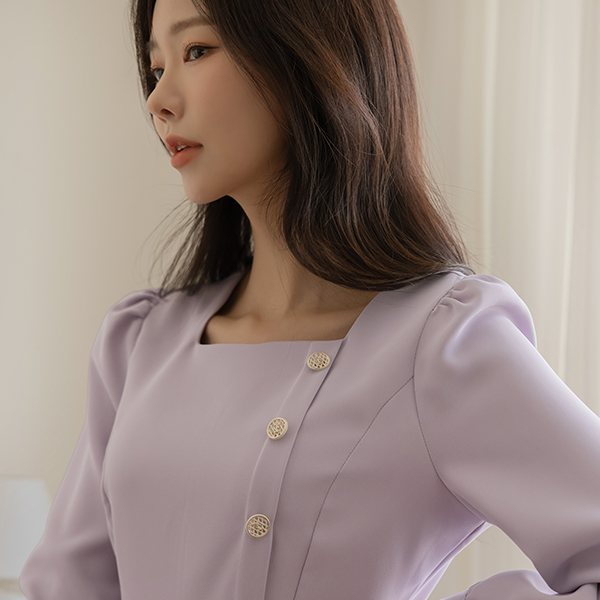 쥬디 金色 方领 A字型 连衣裙