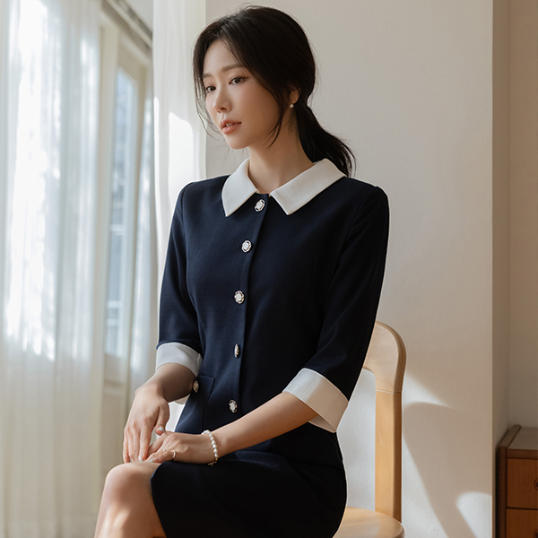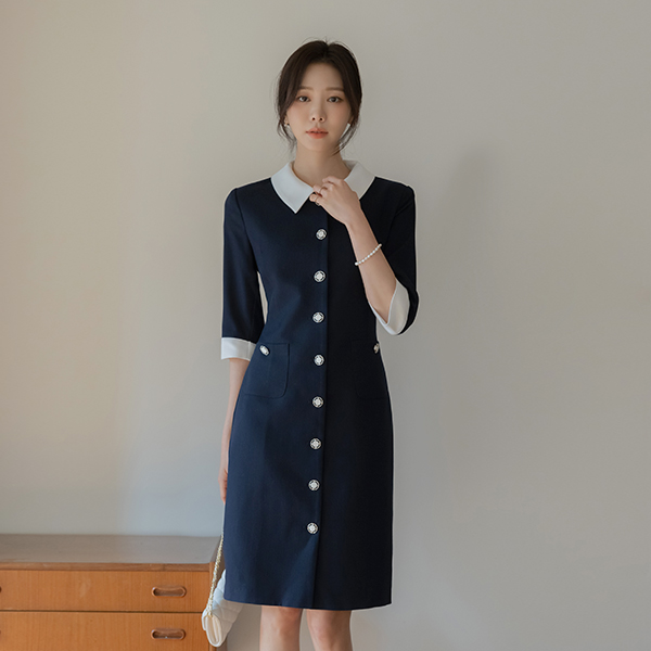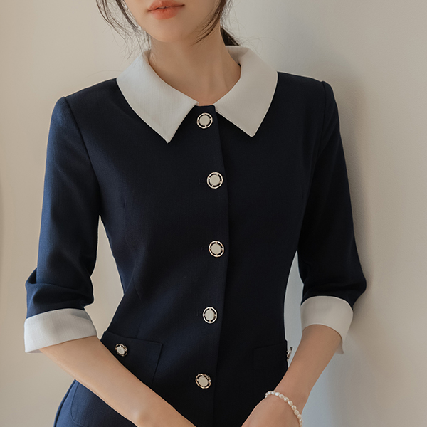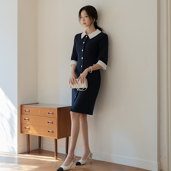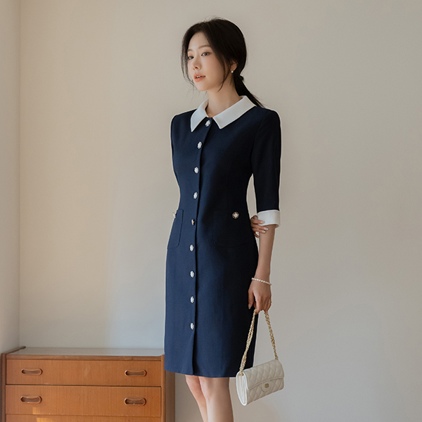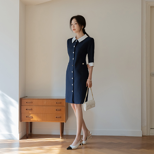 粗呢 领子 配色 H字型 连衣裙
