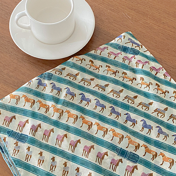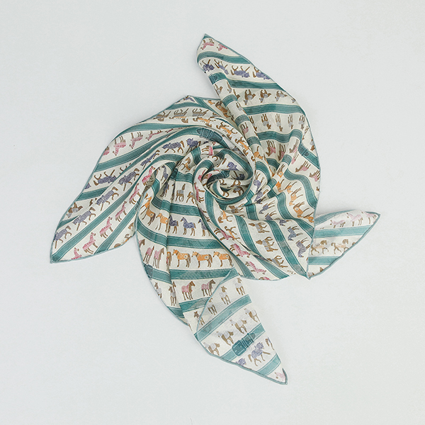 色彩艳丽 马 图案 真丝 四角 围巾