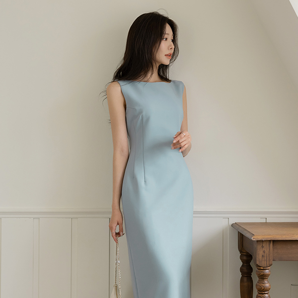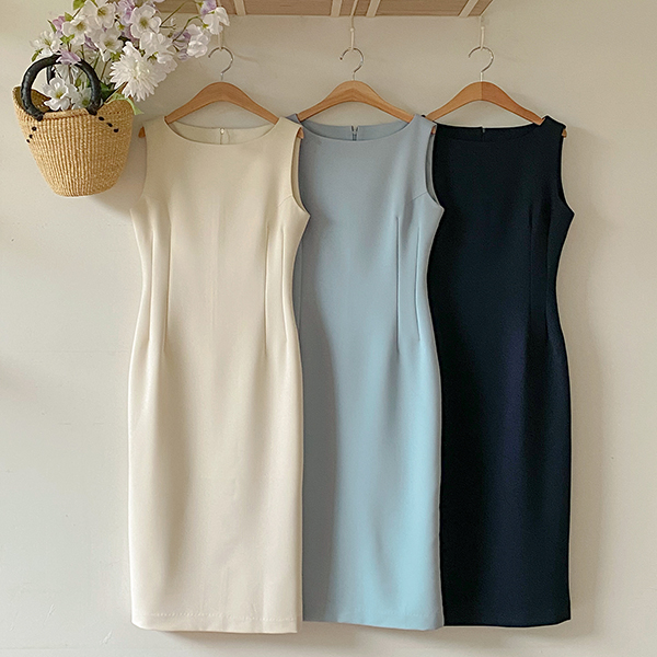 苗条 船形领 弹力 背心 连衣裙