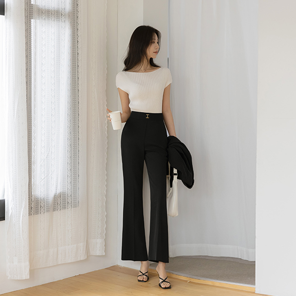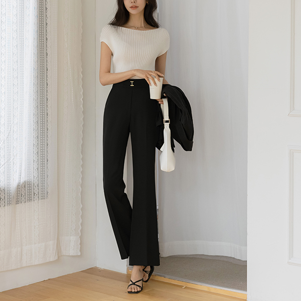 带扣 点缀 喇叭 宽松长裤(Summer)