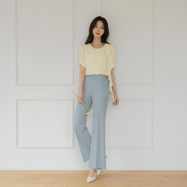 带扣 点缀 喇叭 宽松长裤(Summer)