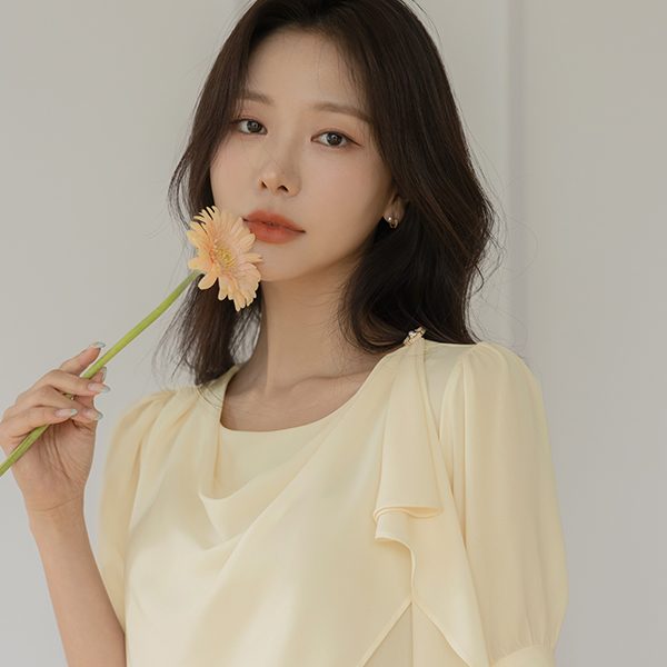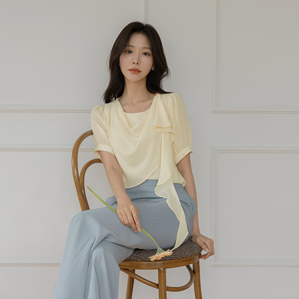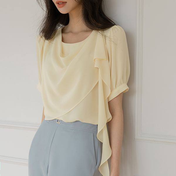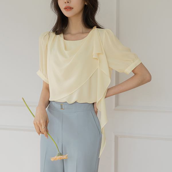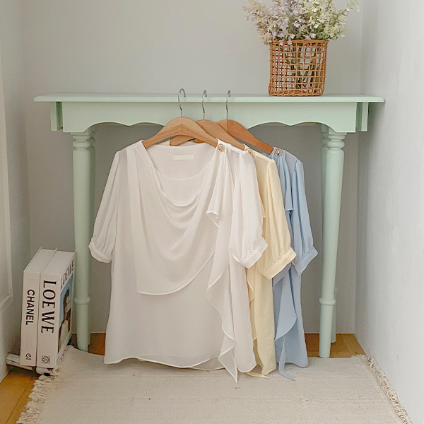 悬垂式 肩部 装饰 短袖 罩衫