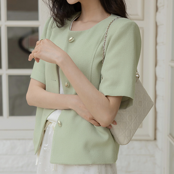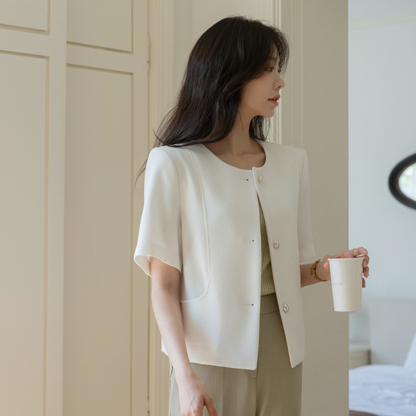 圆领 夏天 粗呢 夹克