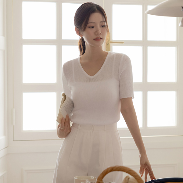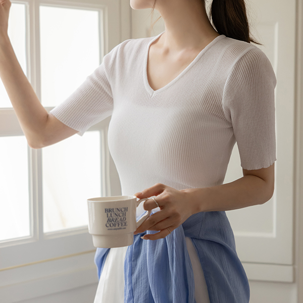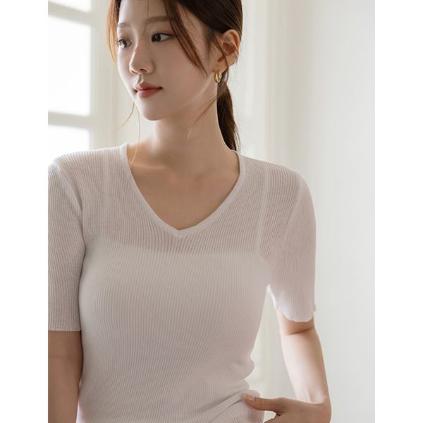 plain 弹力 条绒 V字领 针织衫