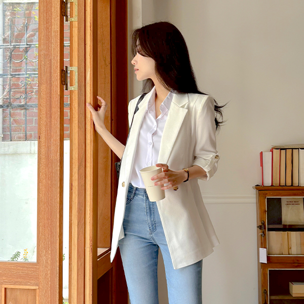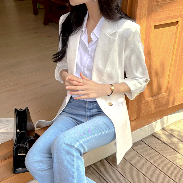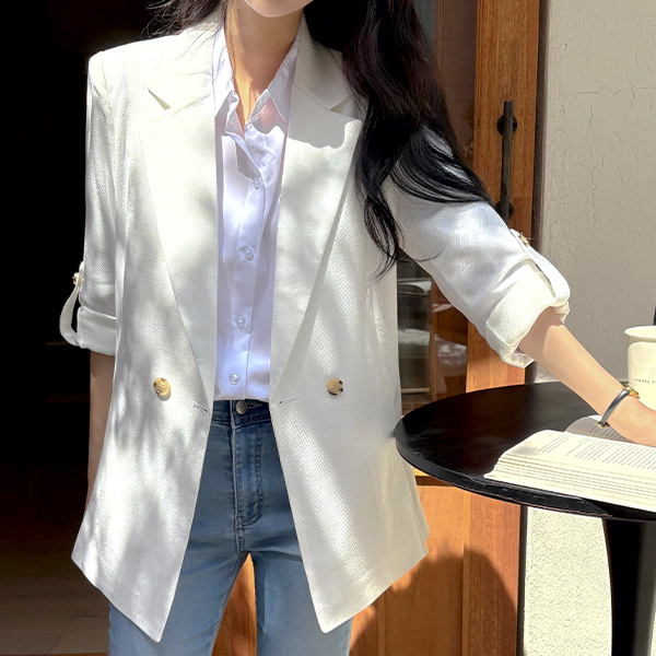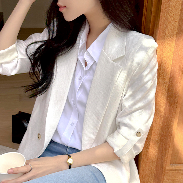 (1+1할인) 褶皱 7分袖 柔丝 弹力 罩衫