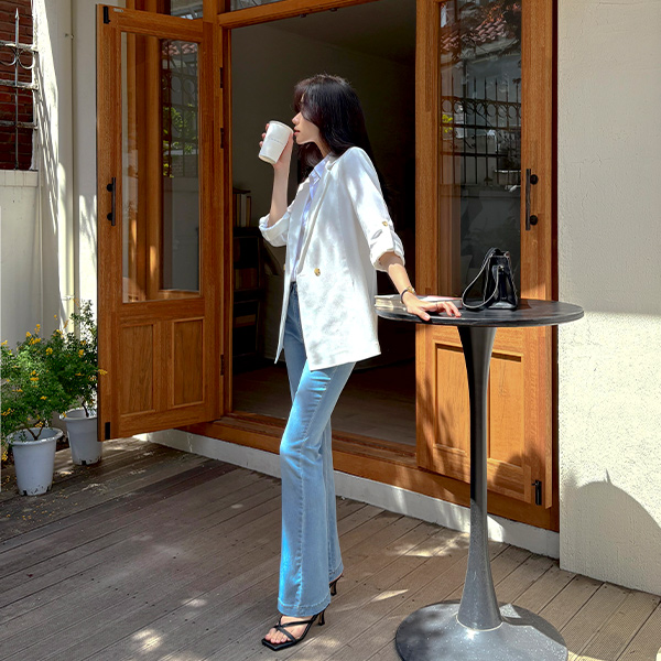 柔丝 麻糬 松紧带 喇叭 牛仔色 裤子