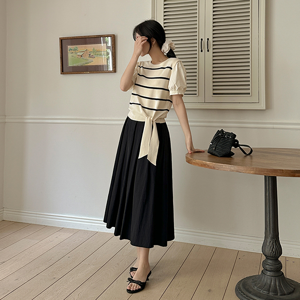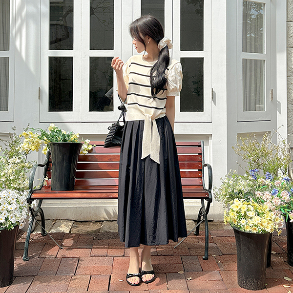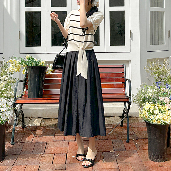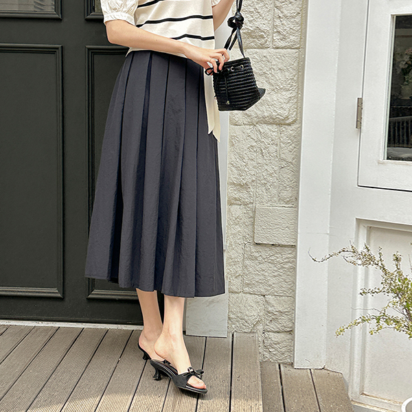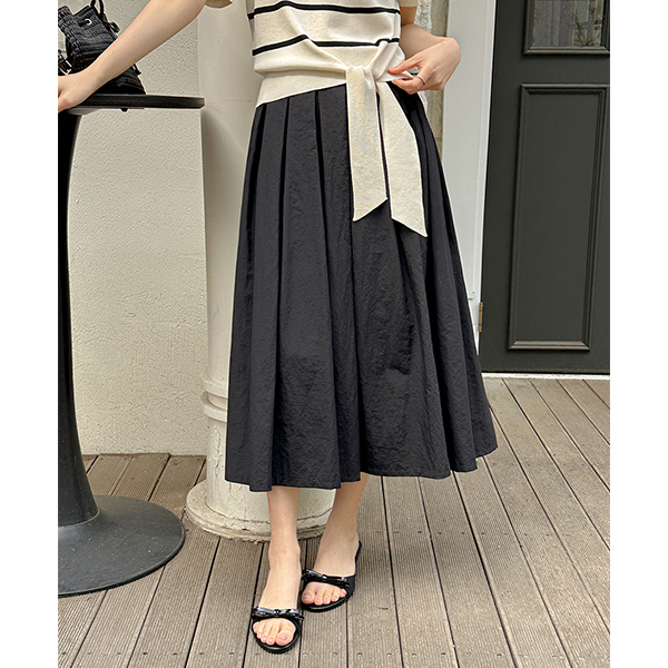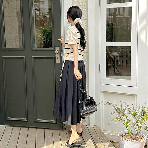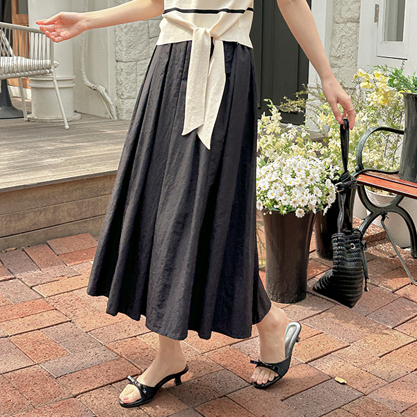 沙沙响 后侧松紧带 褶边 长款 裙子