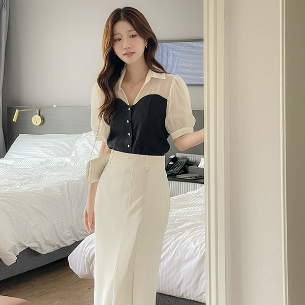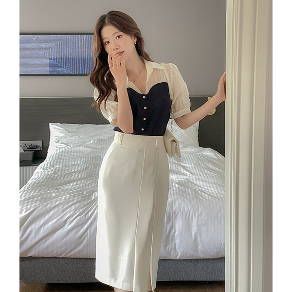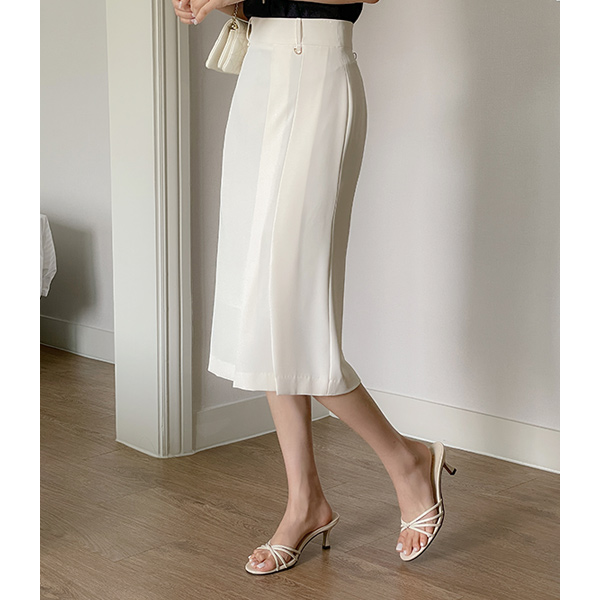 D扣 侧纽 细褶 褶皱 H字型 裙子