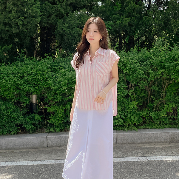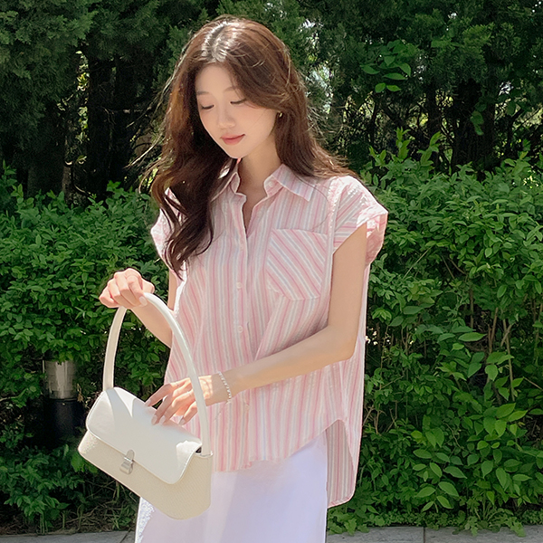 ODE 颜色 条纹 帽檐袖 衬衫