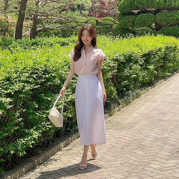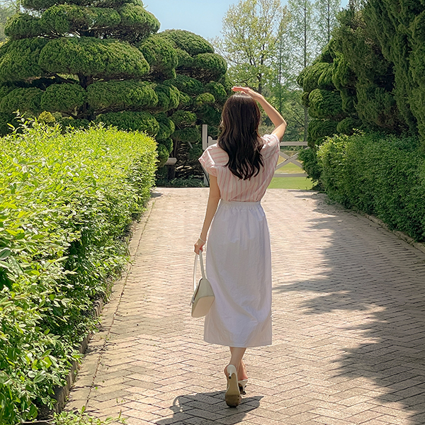 凉爽 沙沙响 맞주름 后侧松紧带 裙子