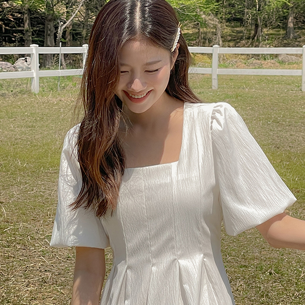 泡泡袖 袖 细褶 鞋带 连衣裙