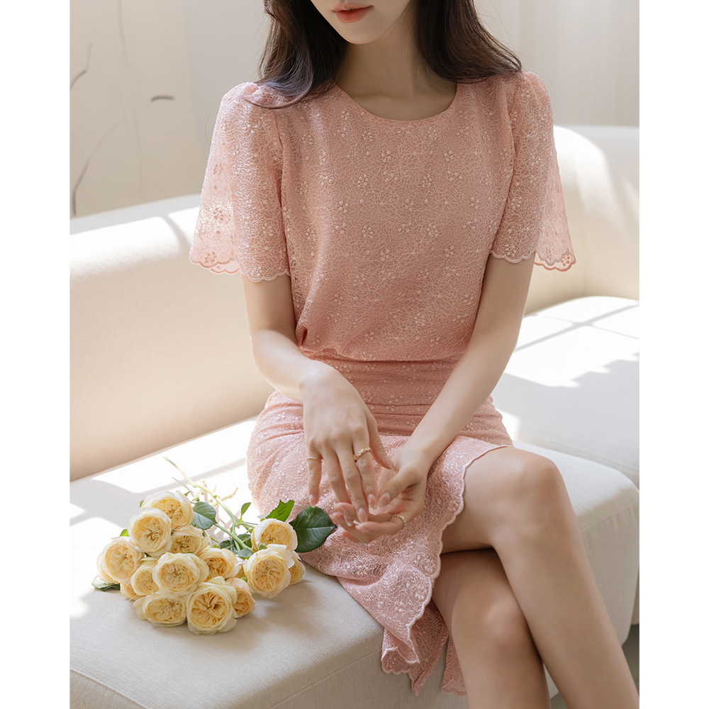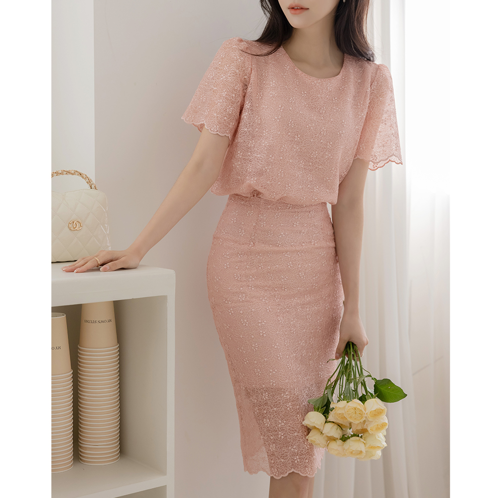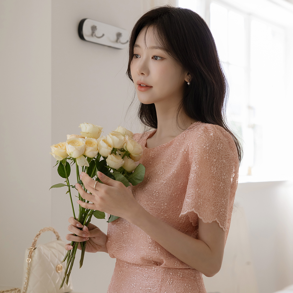 女性化的 蕾丝 波浪卷 Set-up 罩衫