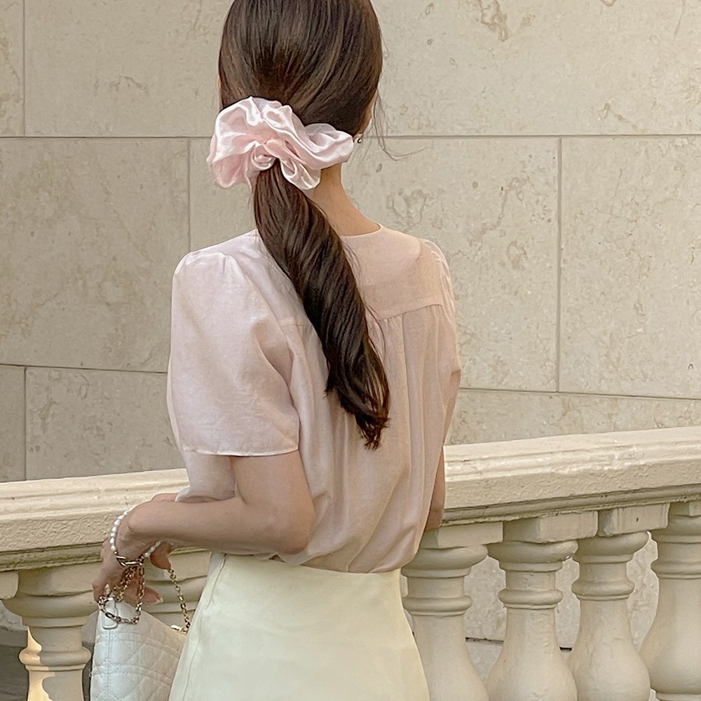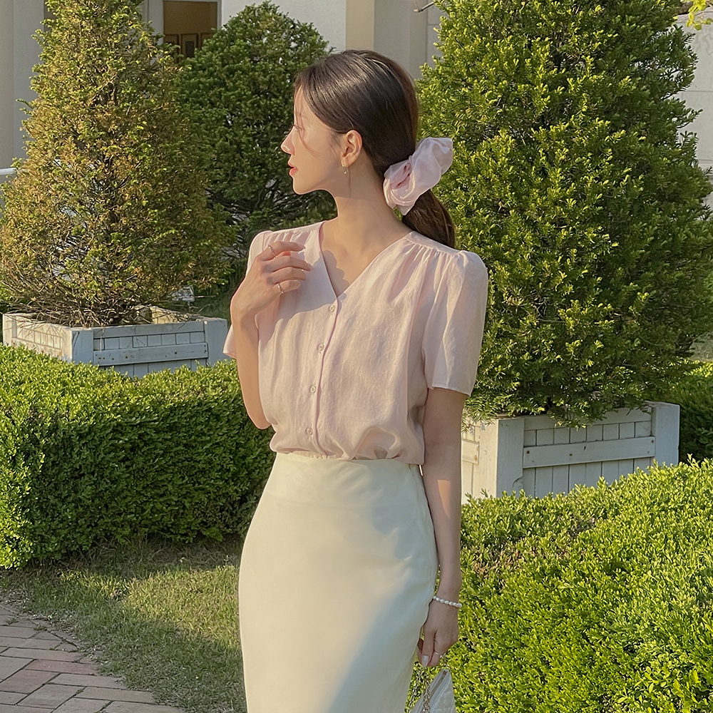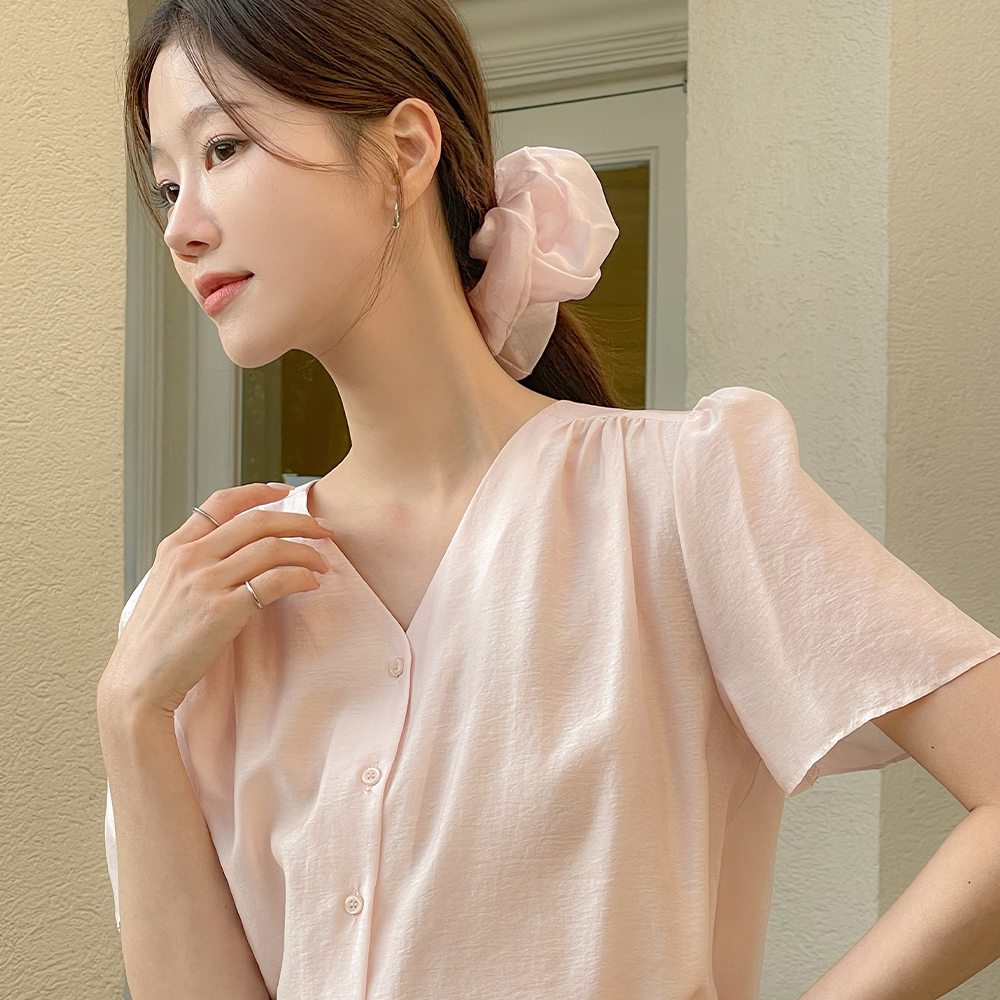 罗彻 V领 泡泡袖 罩衫