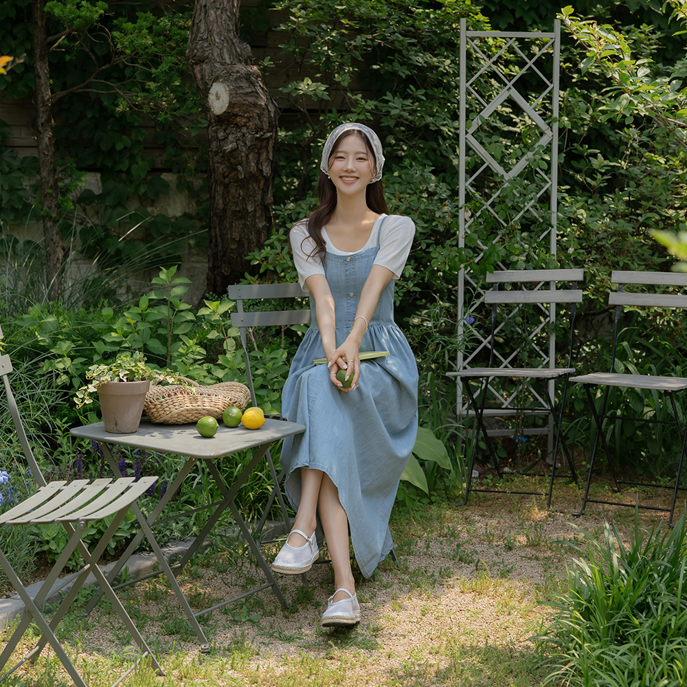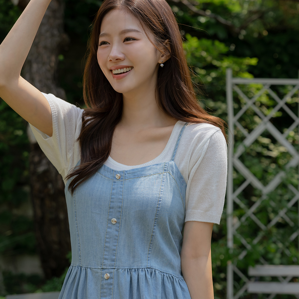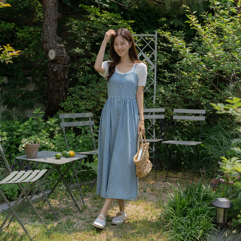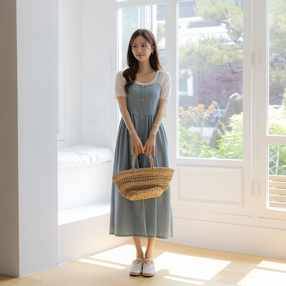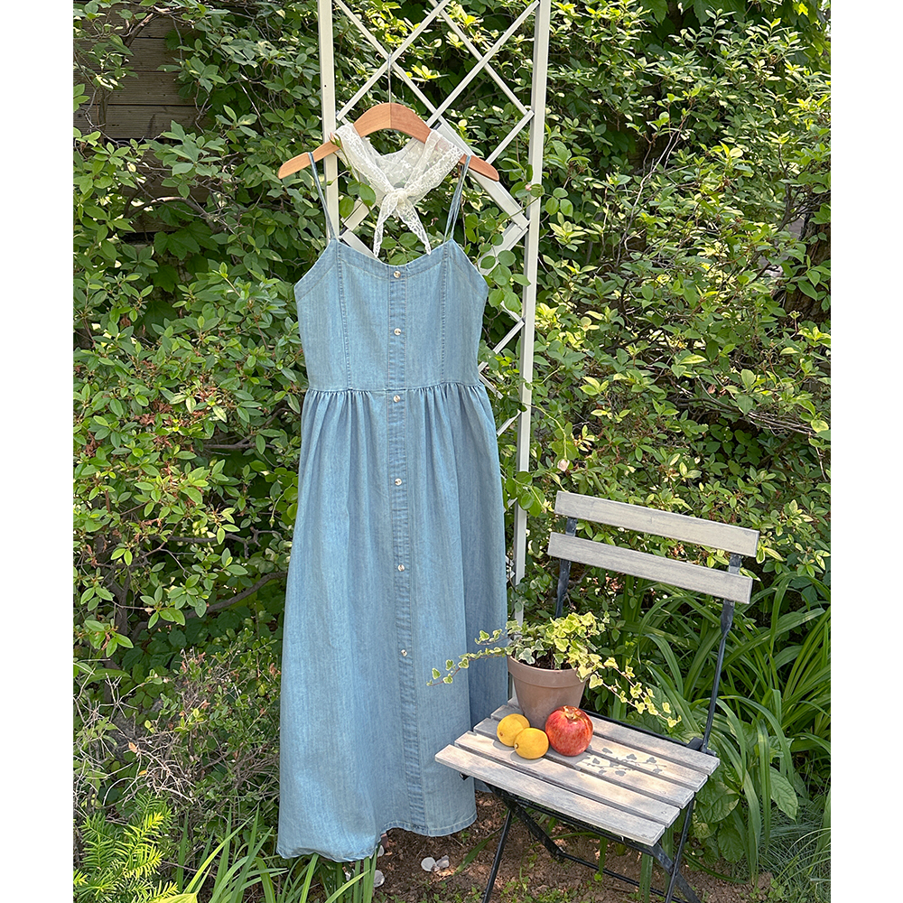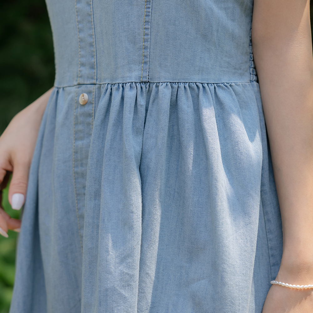 夏天 后侧松紧带 背心 牛仔色 连衣裙