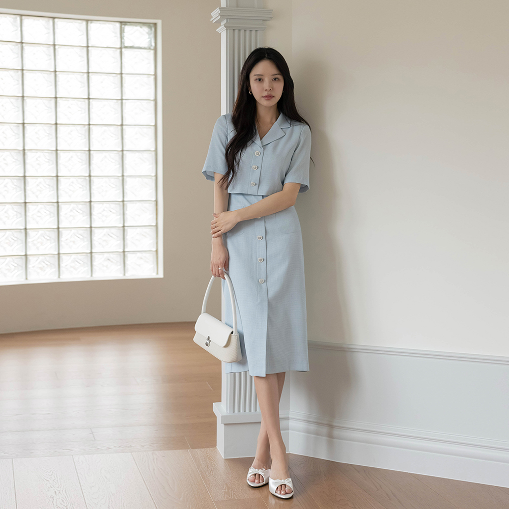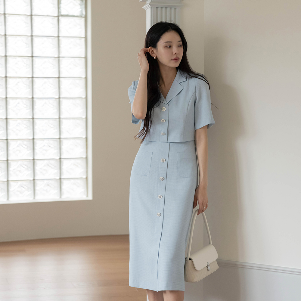 水晶 夏天 粗呢 分层 连衣裙