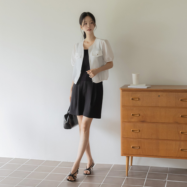 海军 5分 亚麻 后侧松紧带 宽松长裤Ⅱ