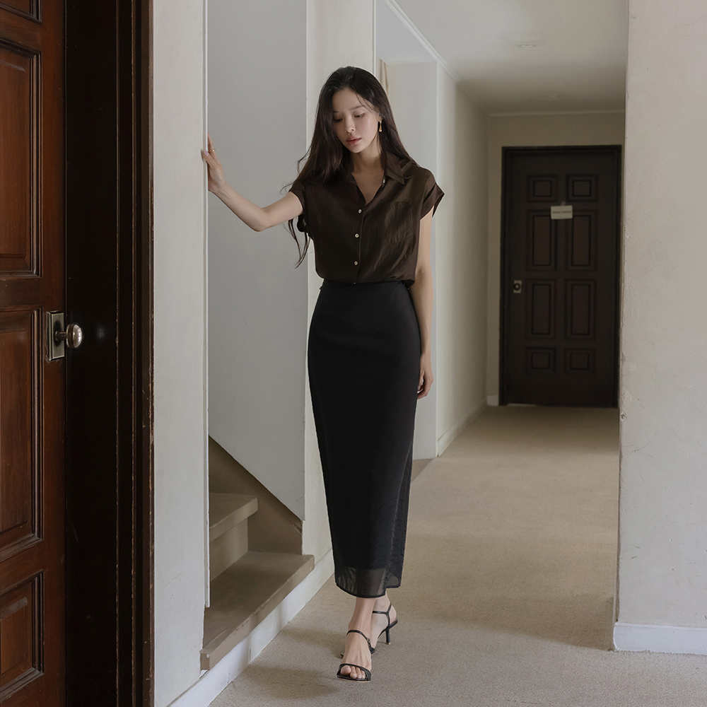 BB 透视 配色 H字型 长款 裙子(+腰带)