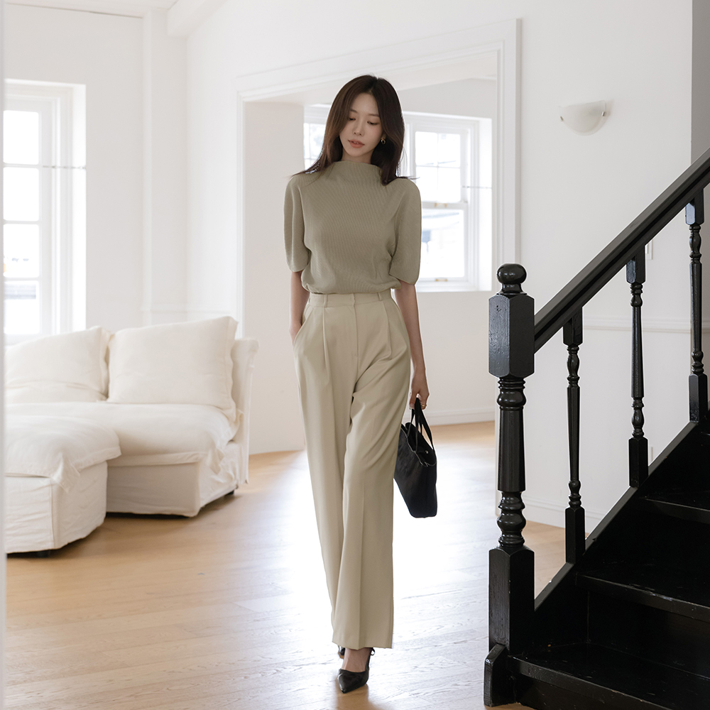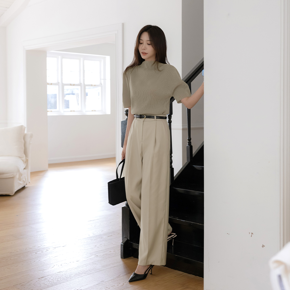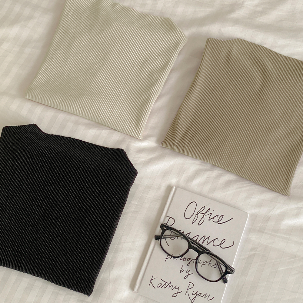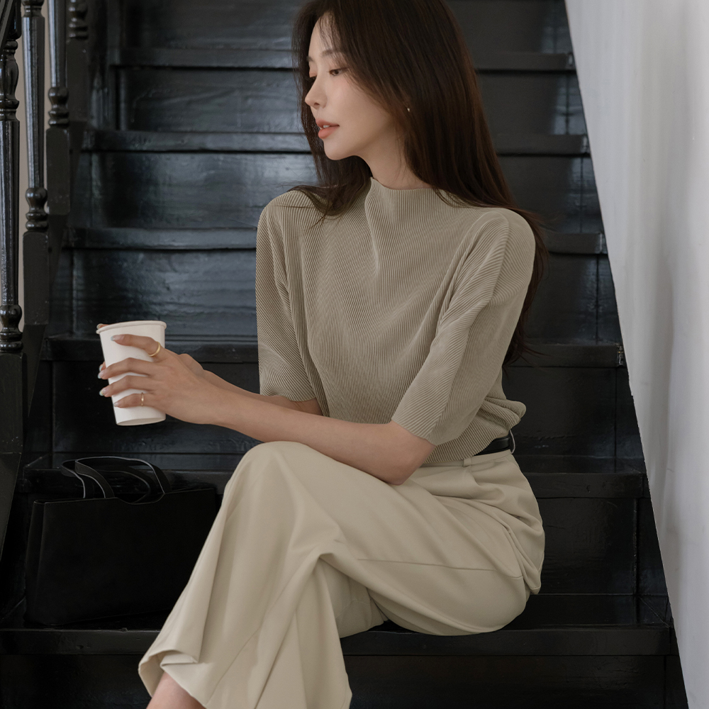 半高领 丝绒 褶边 短袖 T恤衫