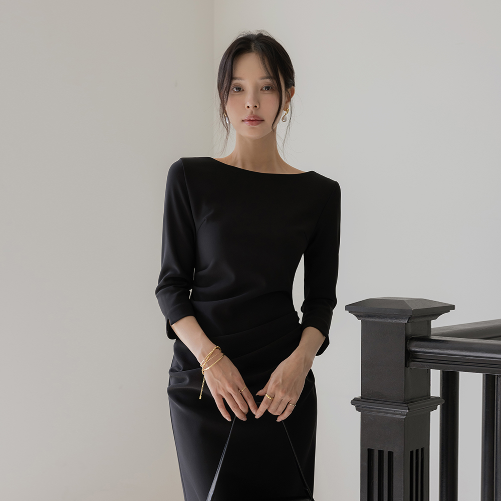 [O:neul] 覆盖 褶皱 여리넥 热爱 弹力 连衣裙