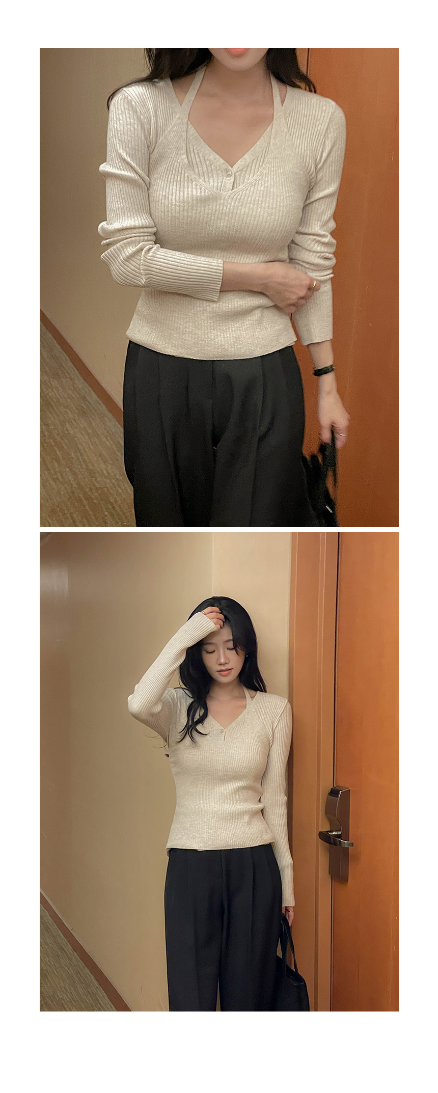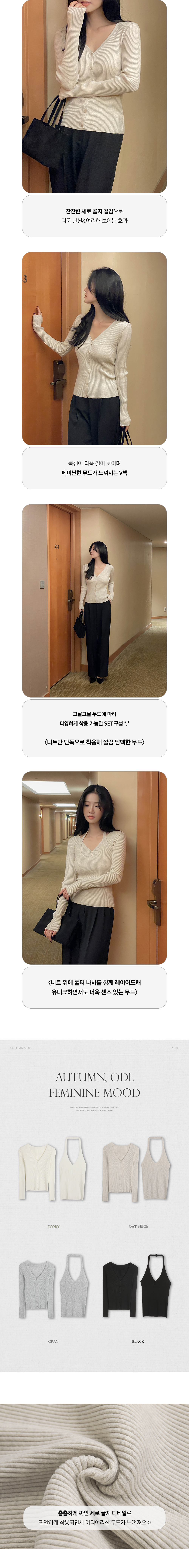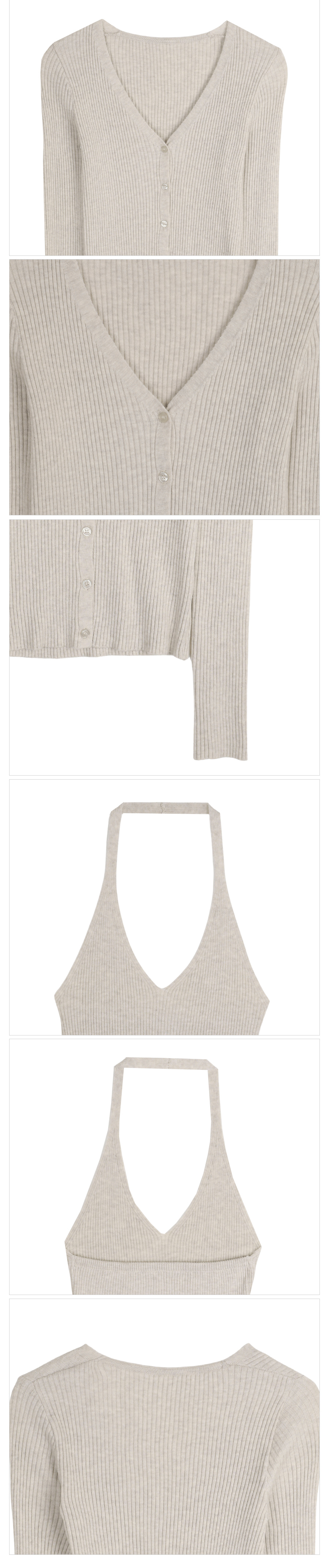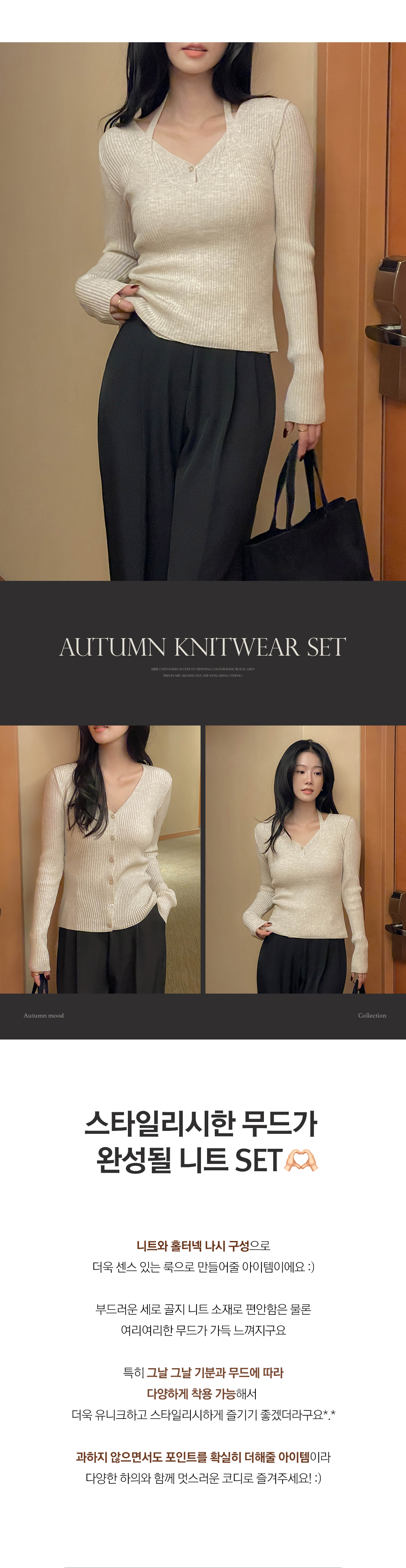 Jenny 袒肩露背领&条绒 针织衫 SET