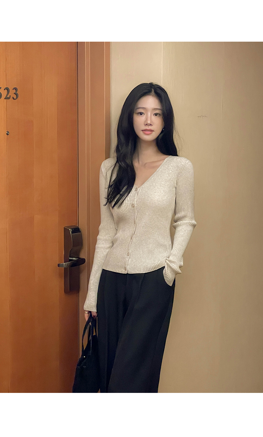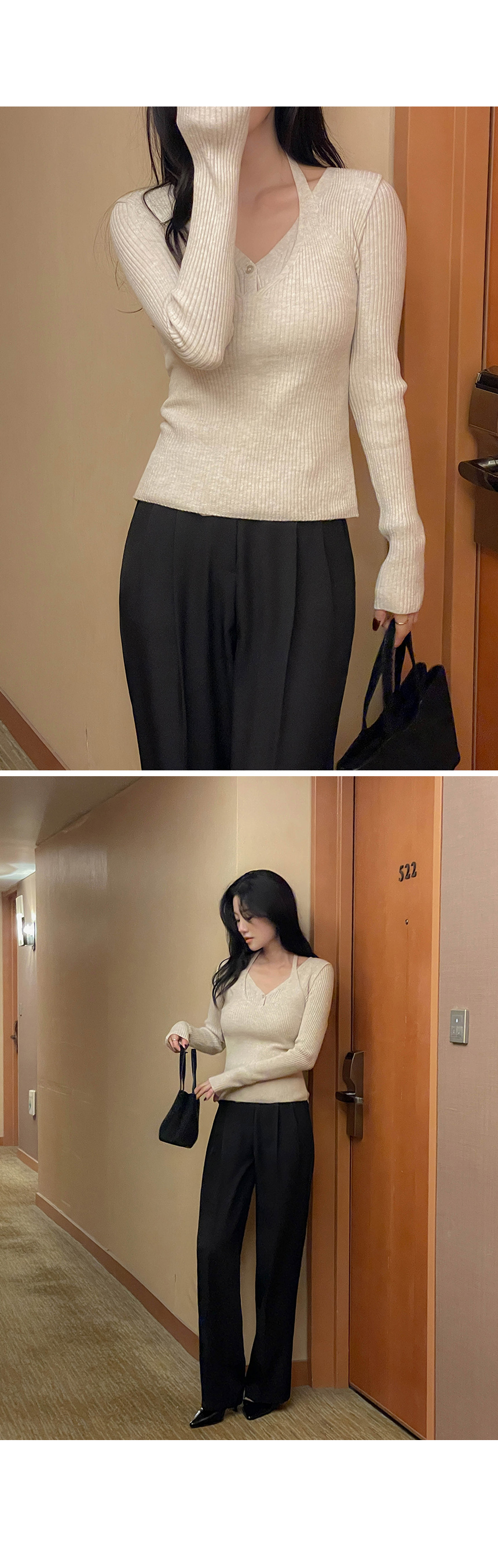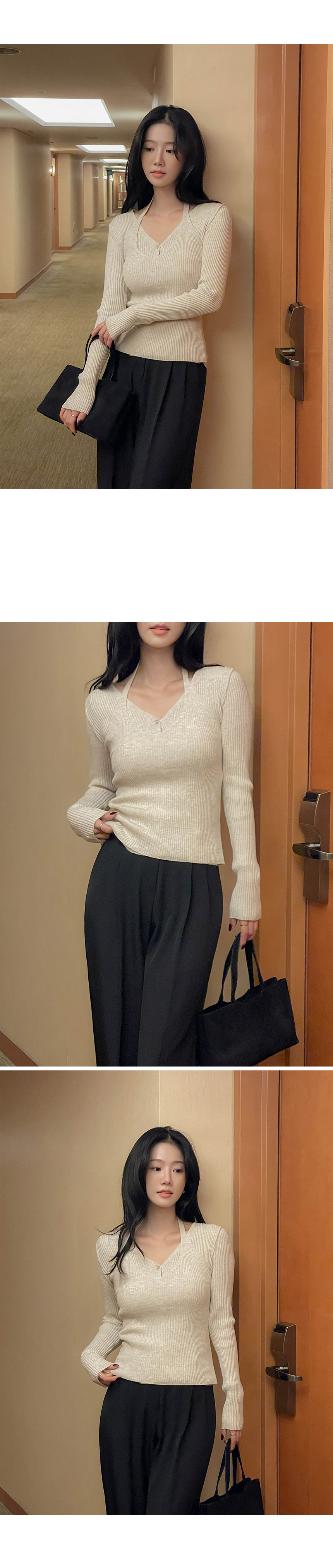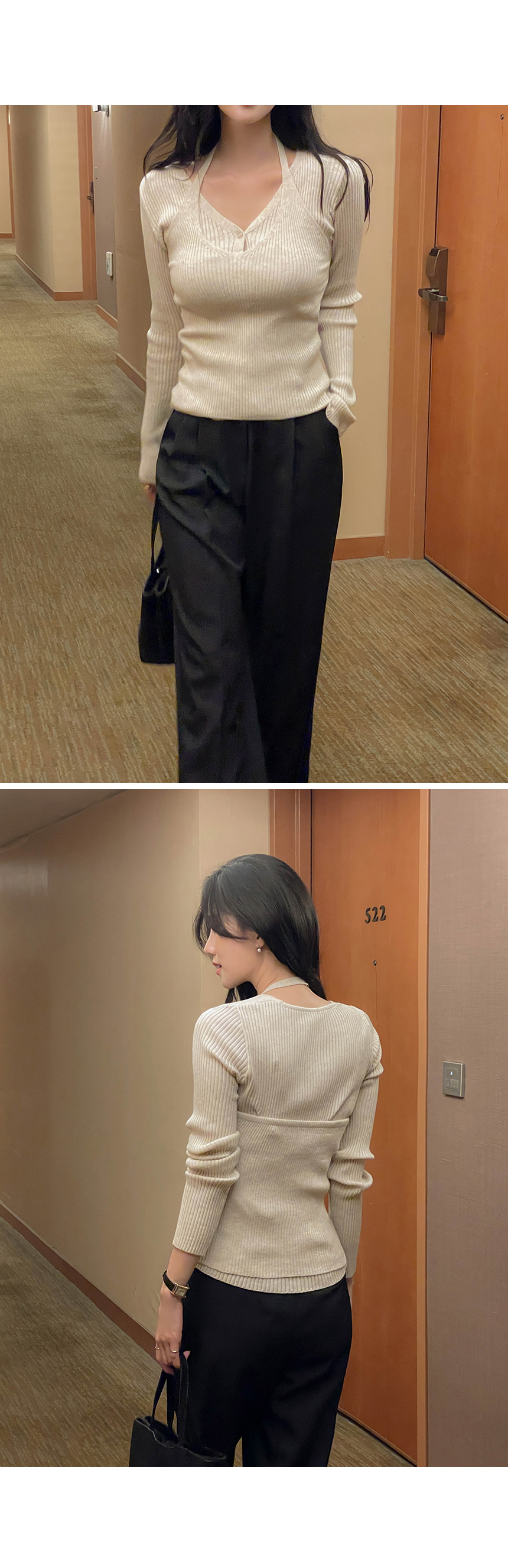 Jenny 袒肩露背领&条绒 针织衫 SET