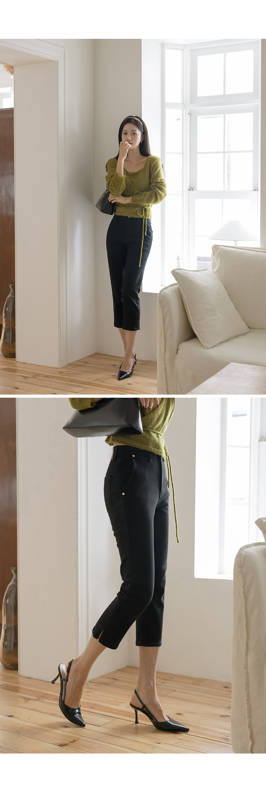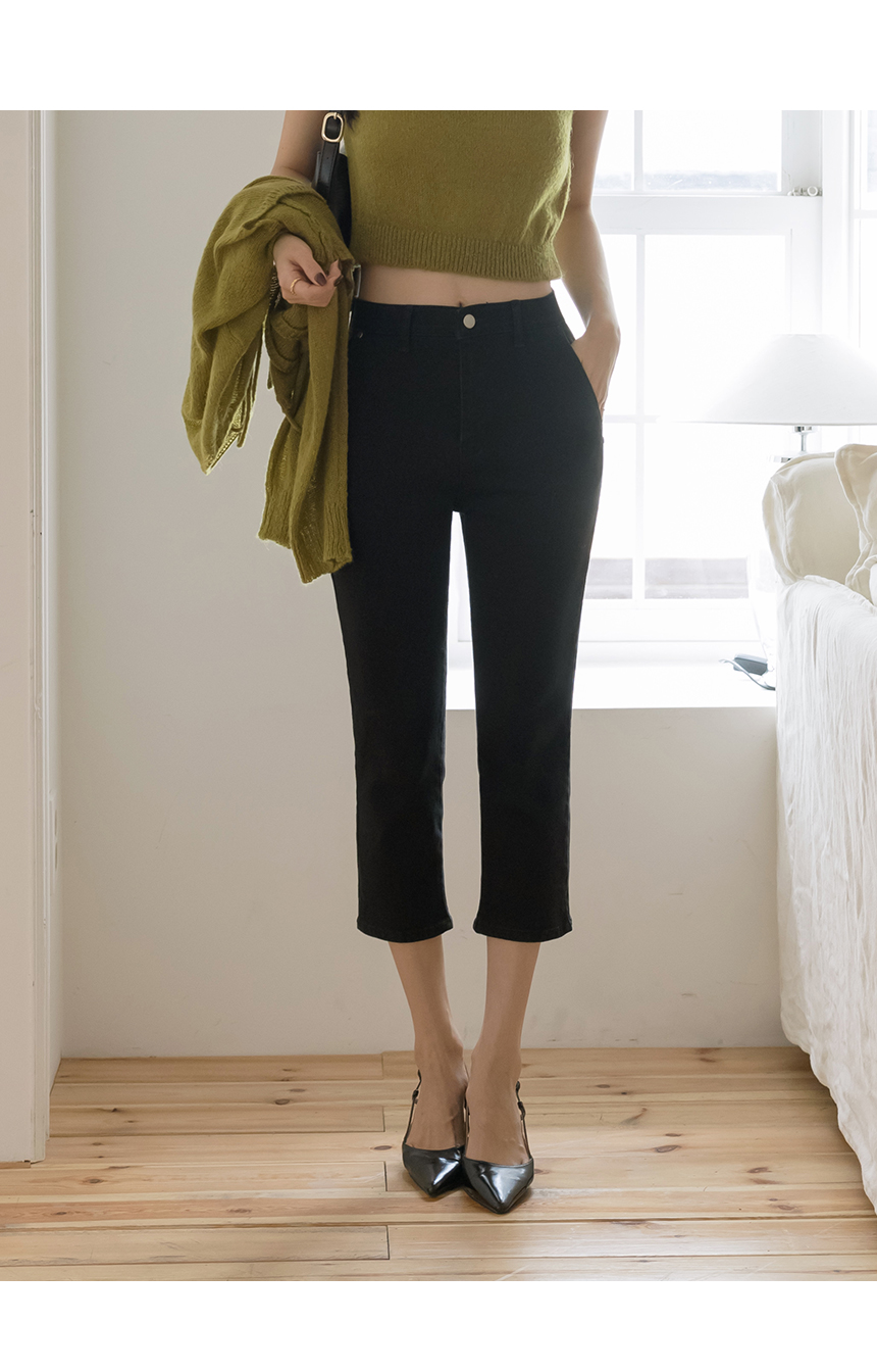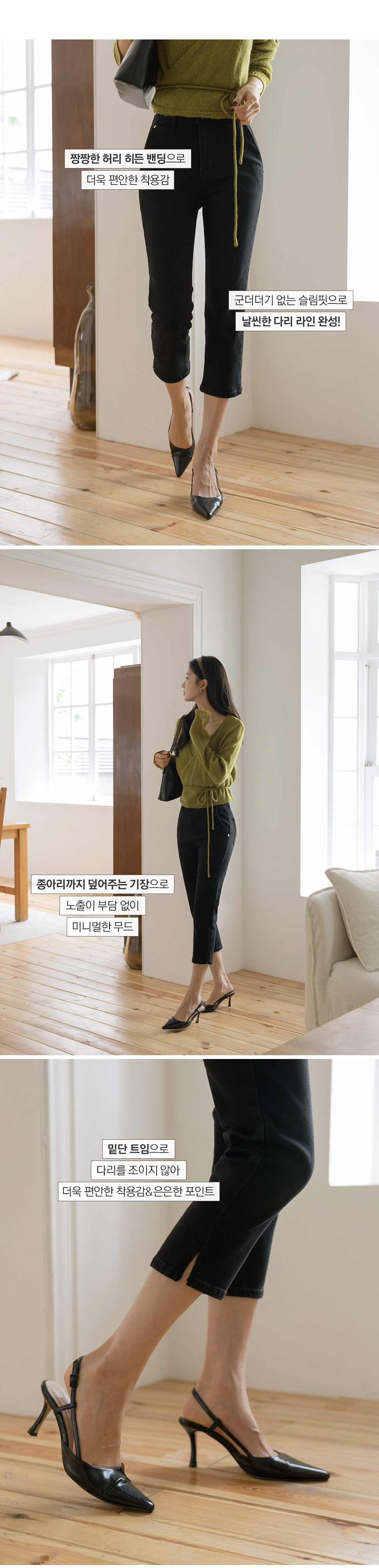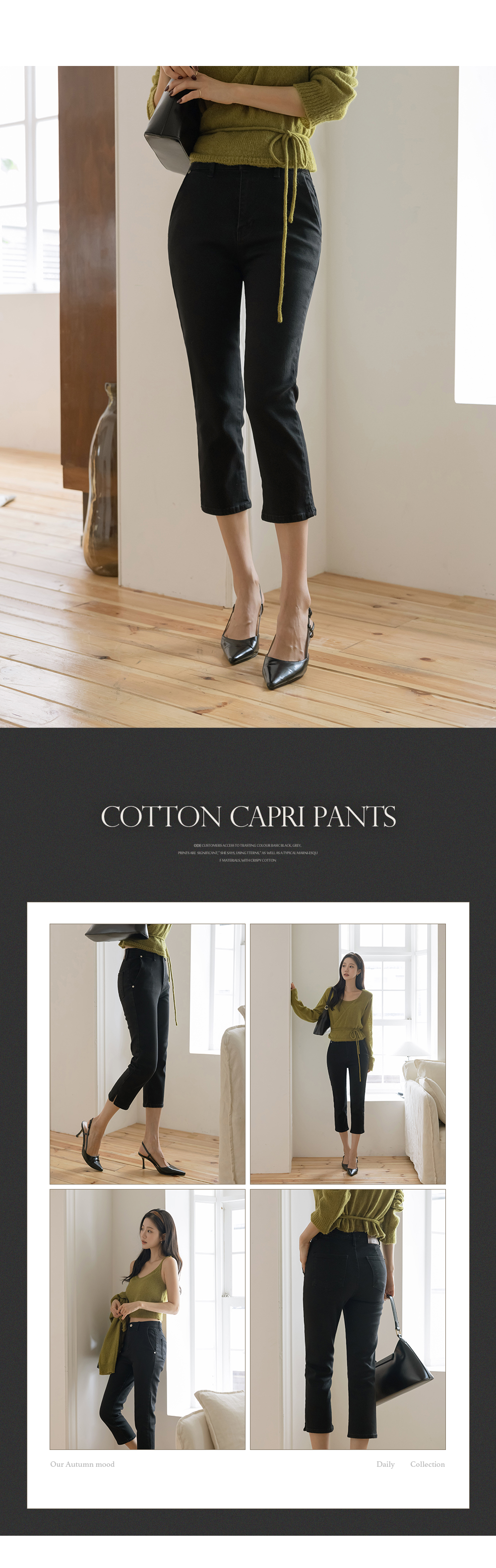 棉 开衩 弹力 카프리 裤子