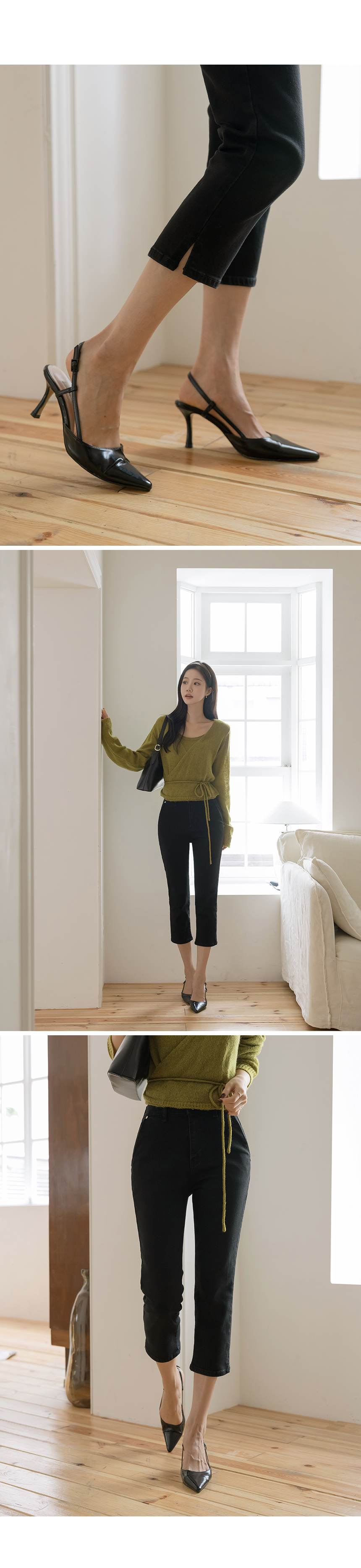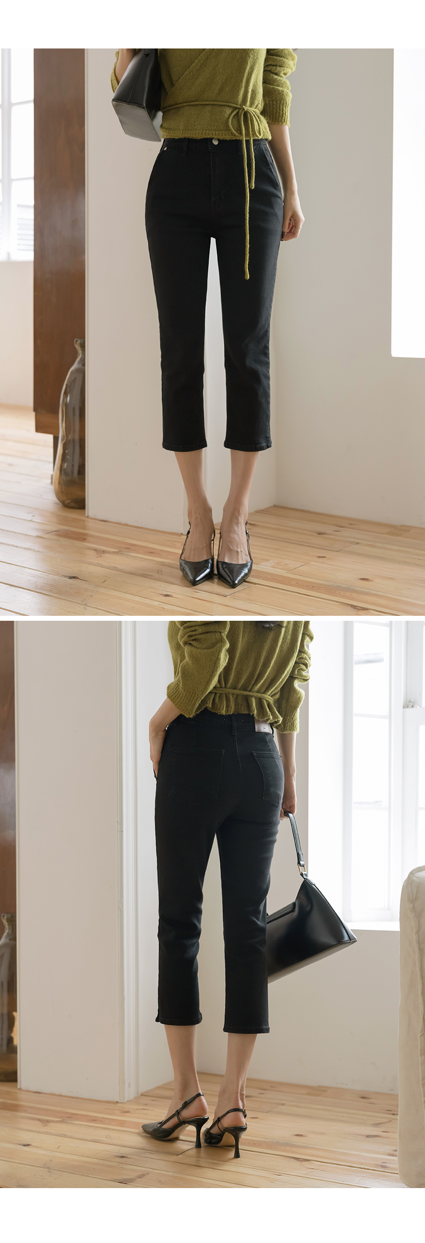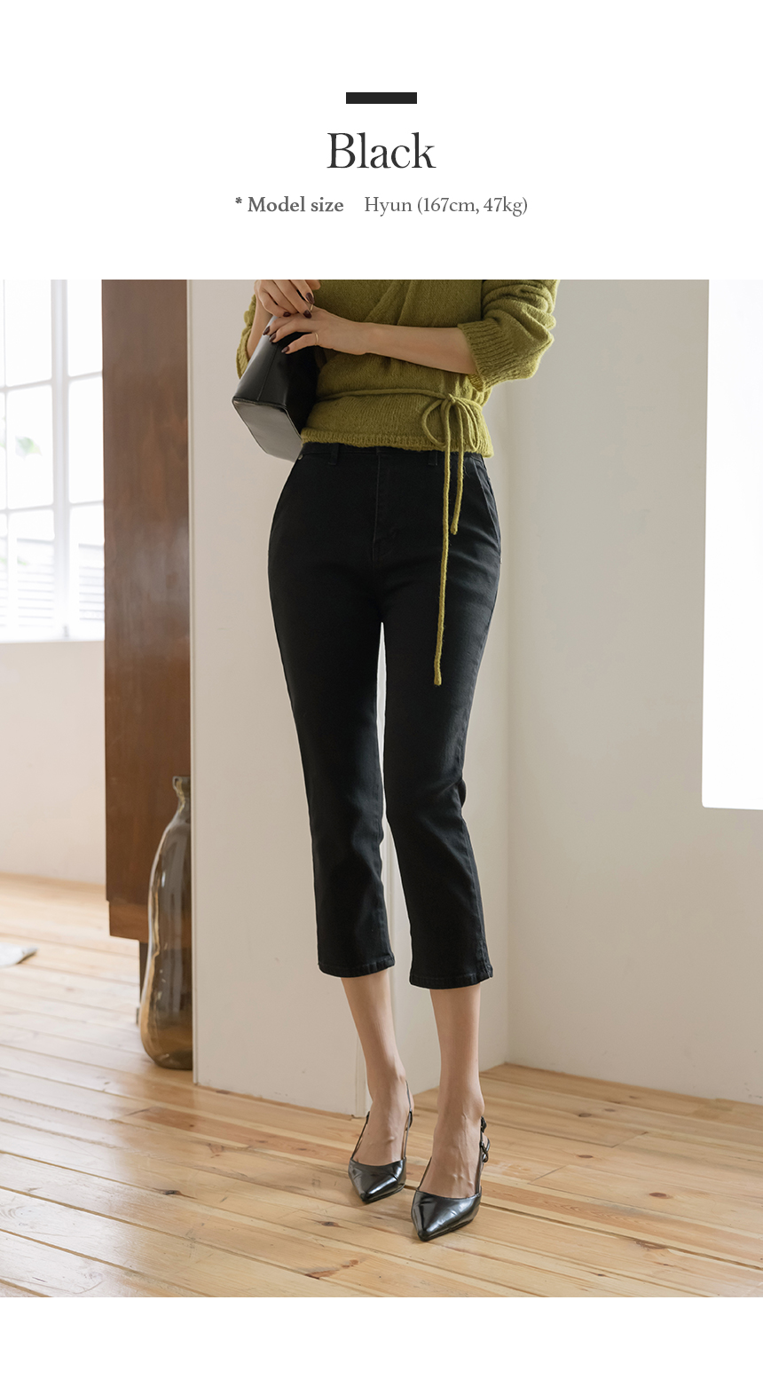 棉 开衩 弹力 카프리 裤子