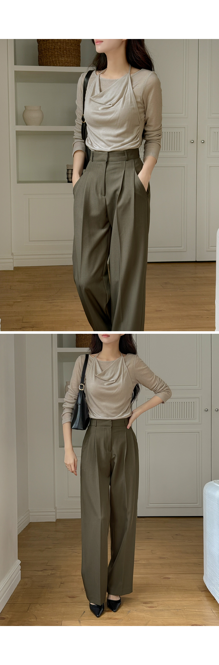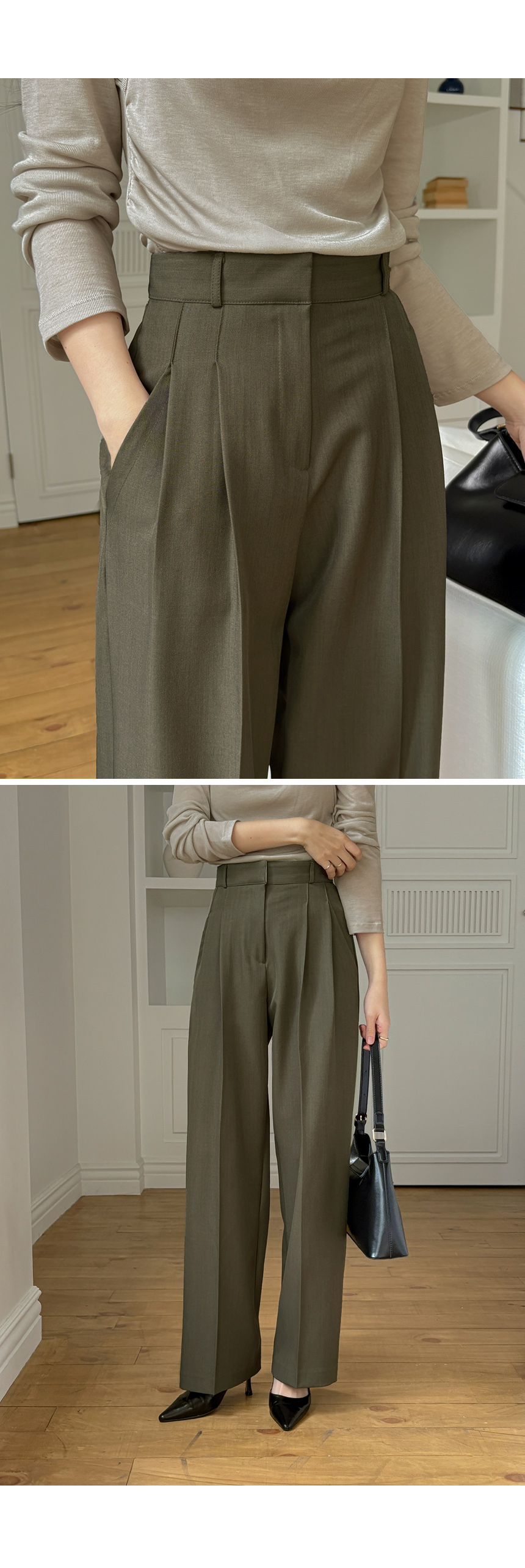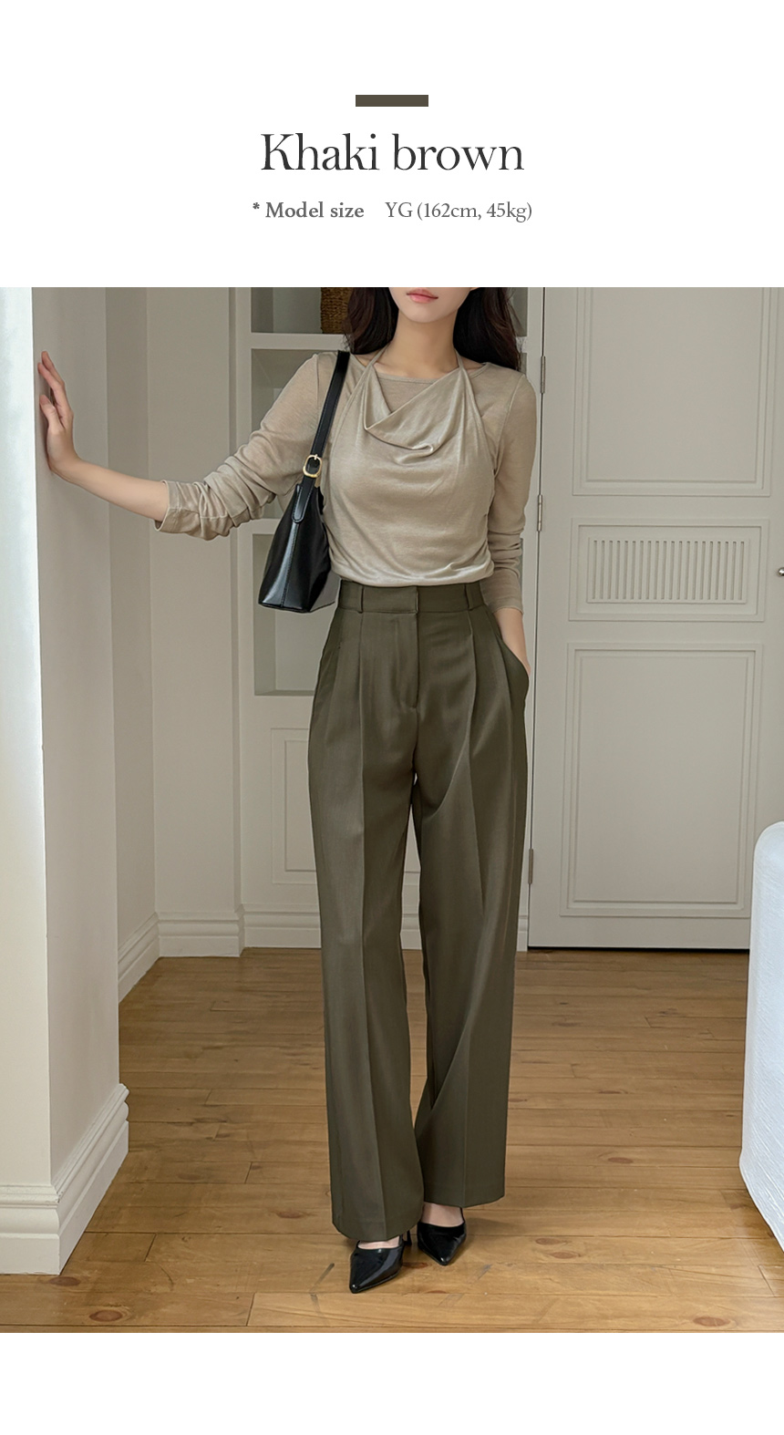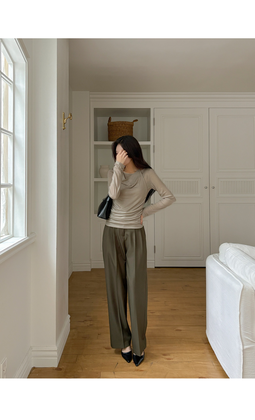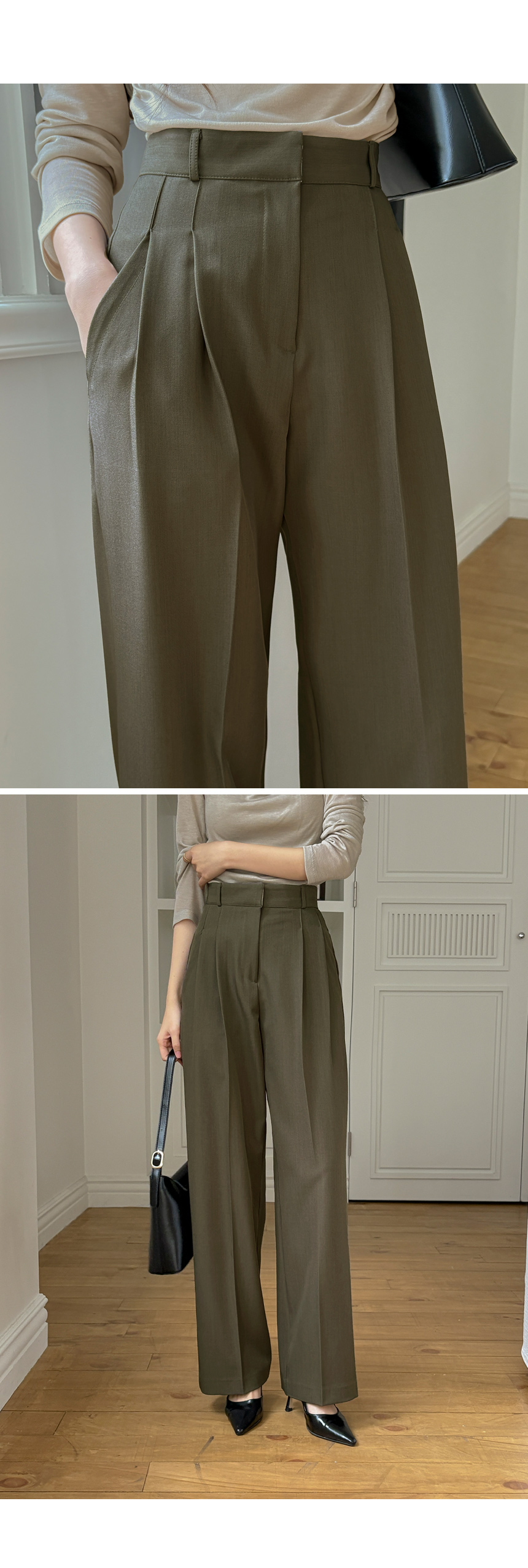 木头 双 细褶 宽松 宽松长裤