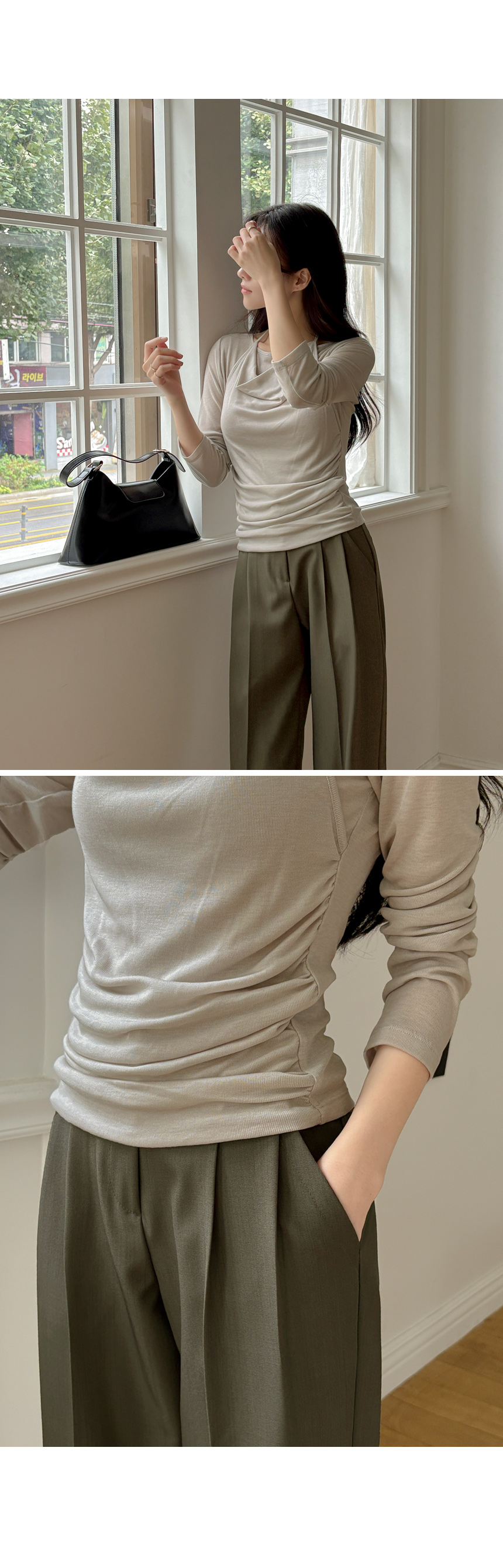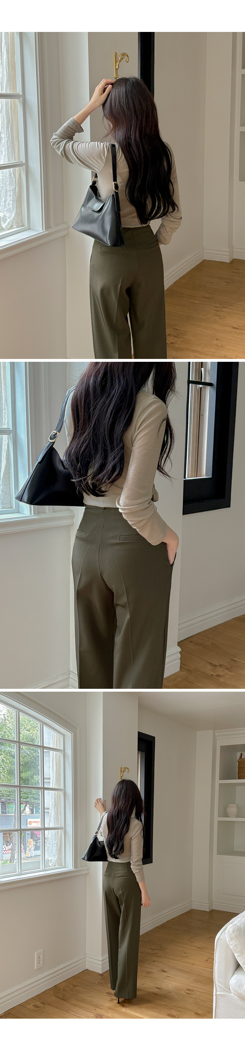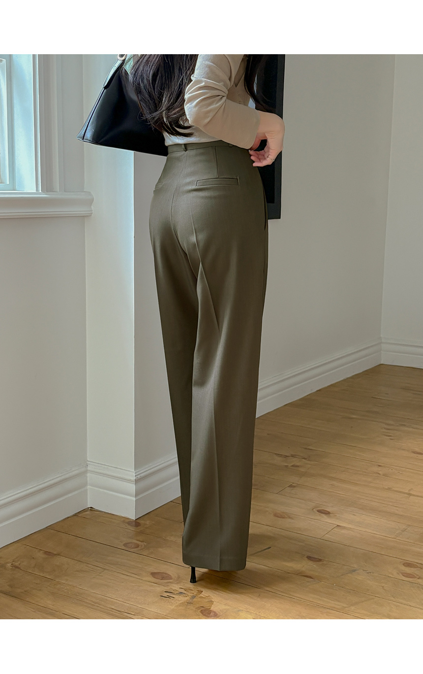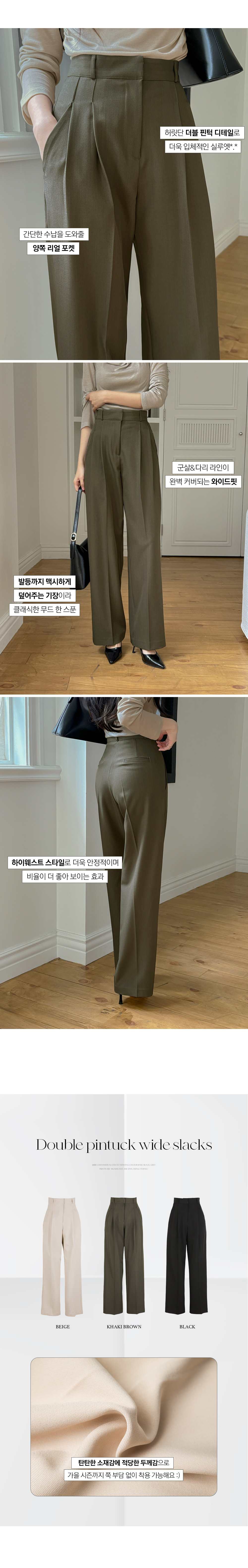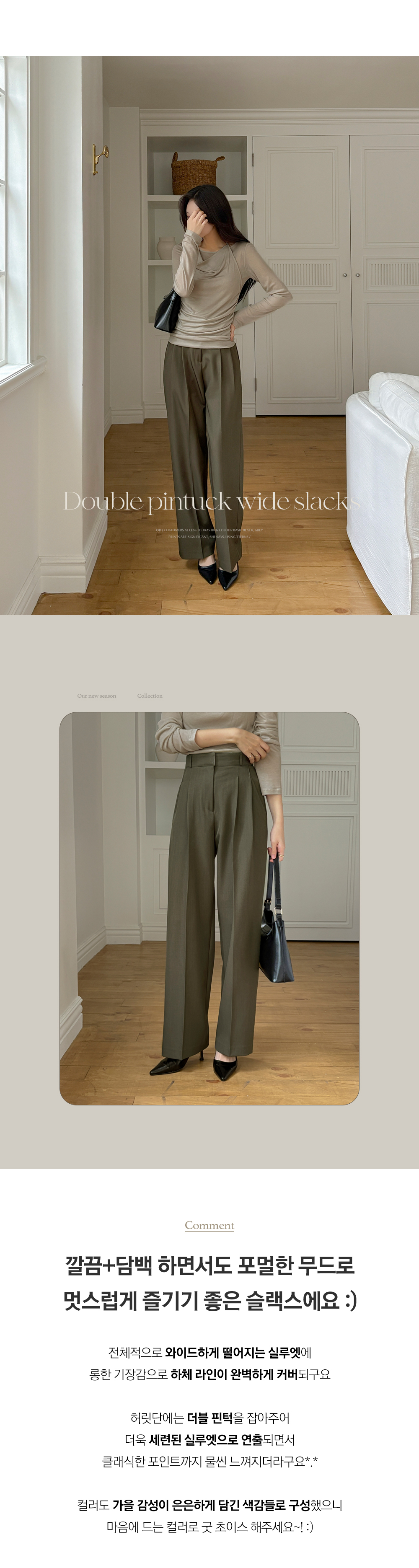 木头 双 细褶 宽松 宽松长裤
