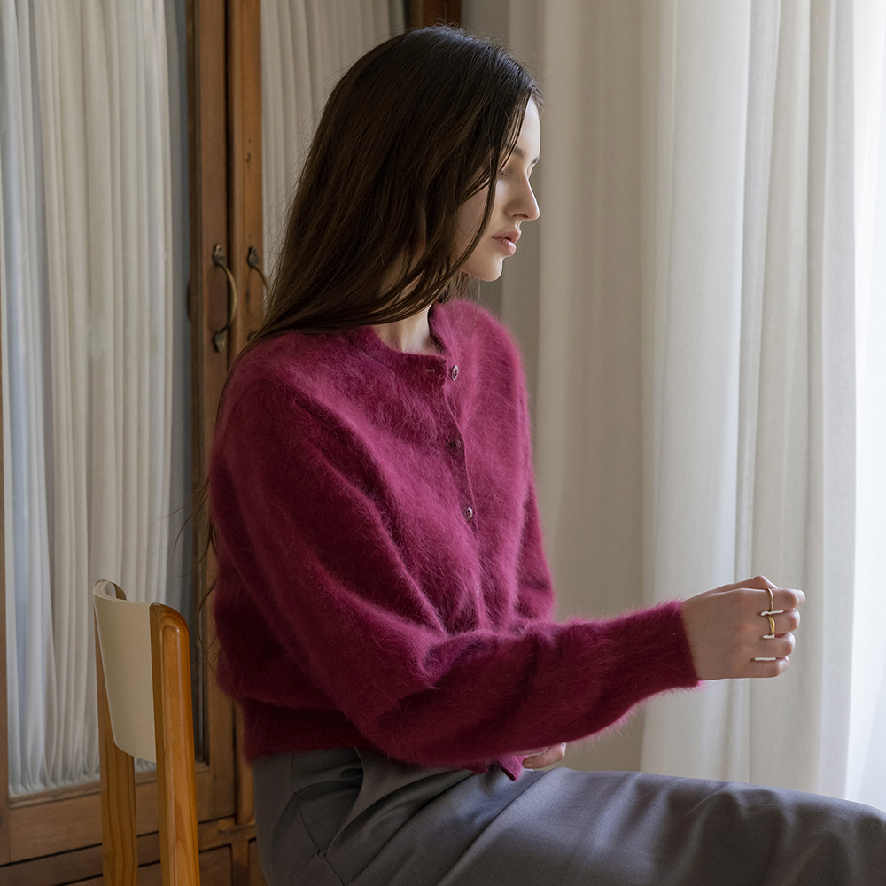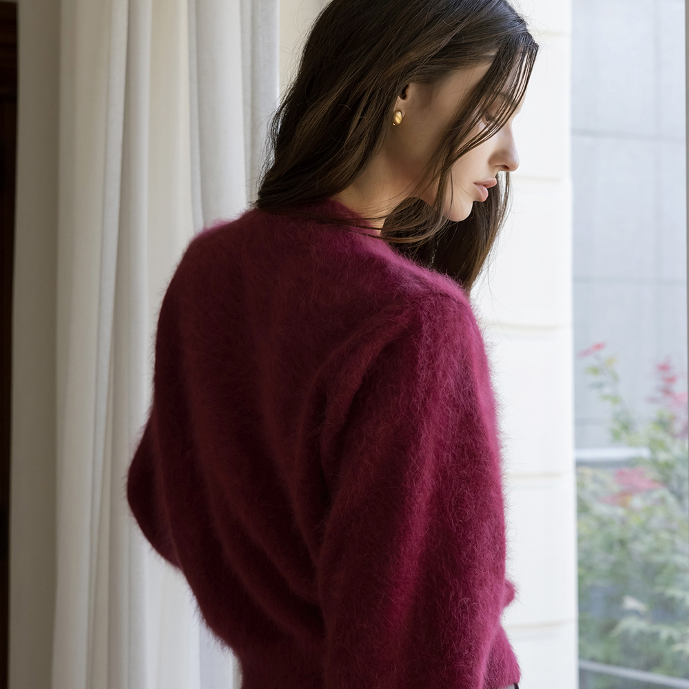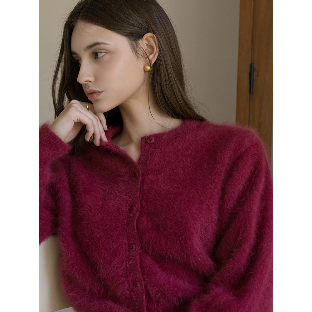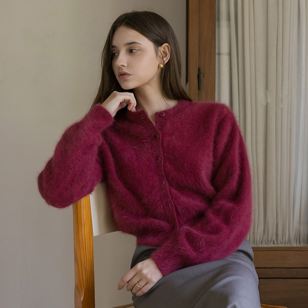 柔软的 安哥拉 圆领 开衫
