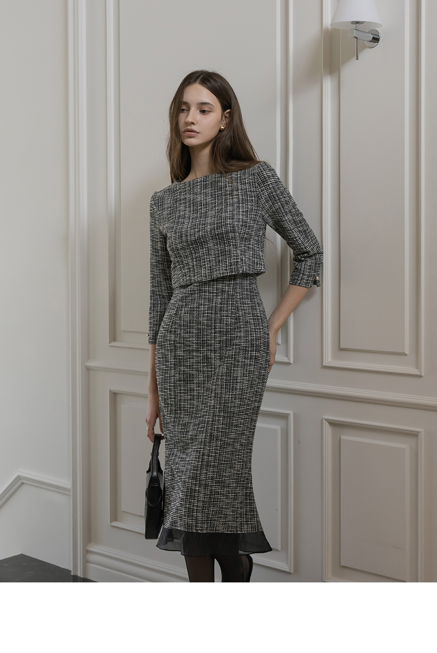 [O:neul] 美人鱼 弹力 粗呢 连衣裙