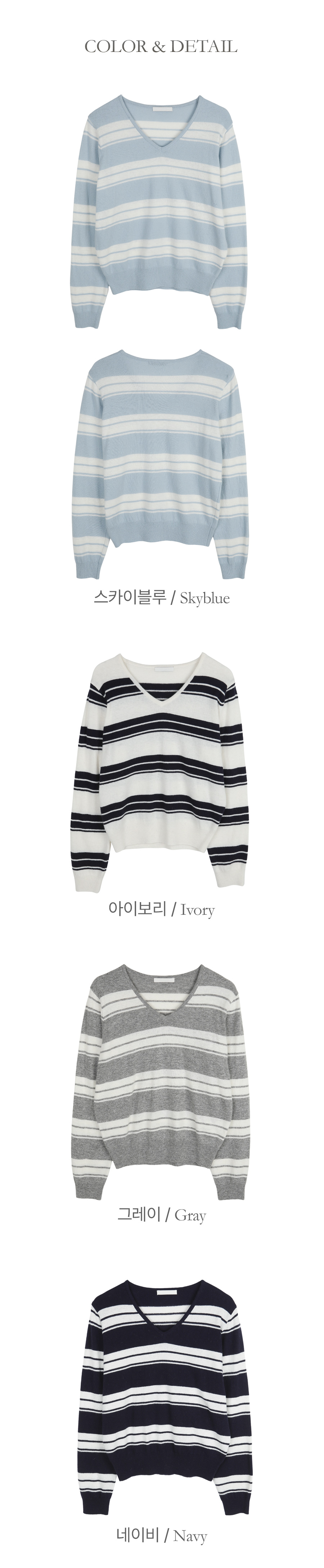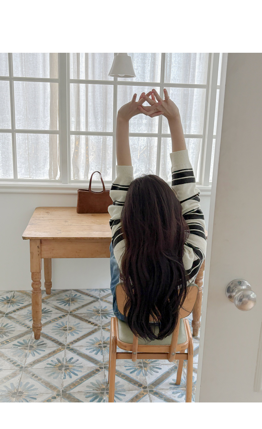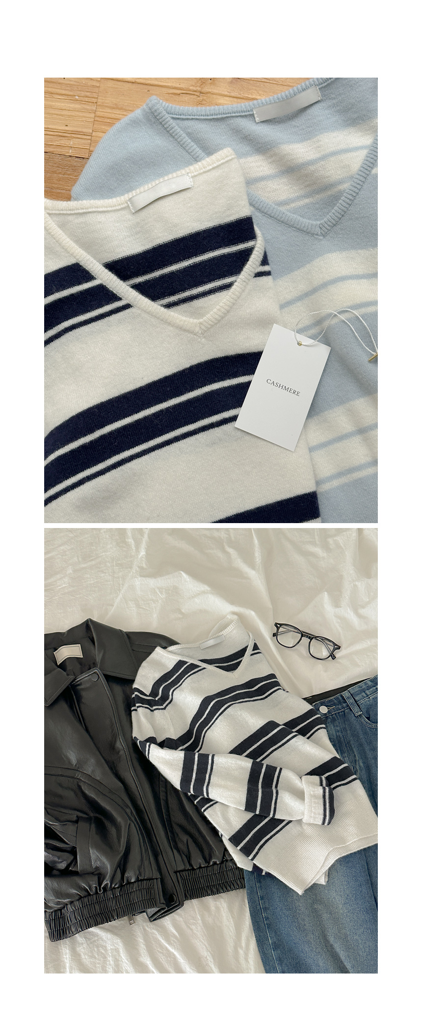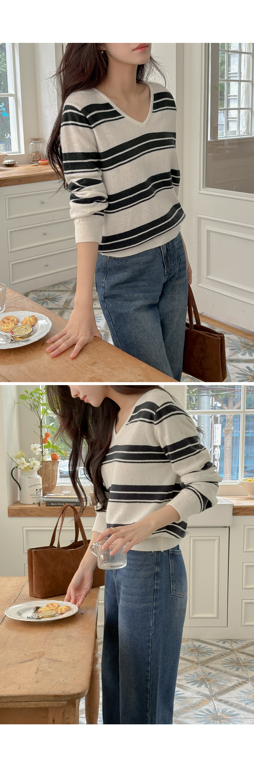 羊绒&羊毛 横条纹 V领 针织衫