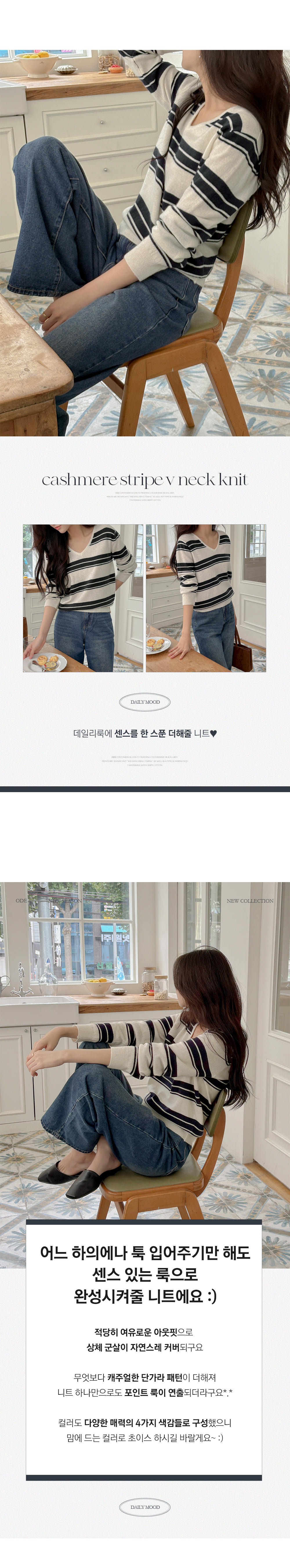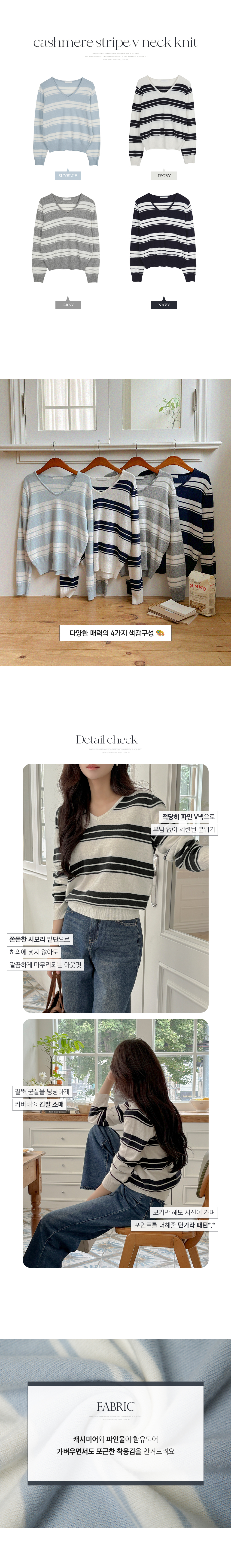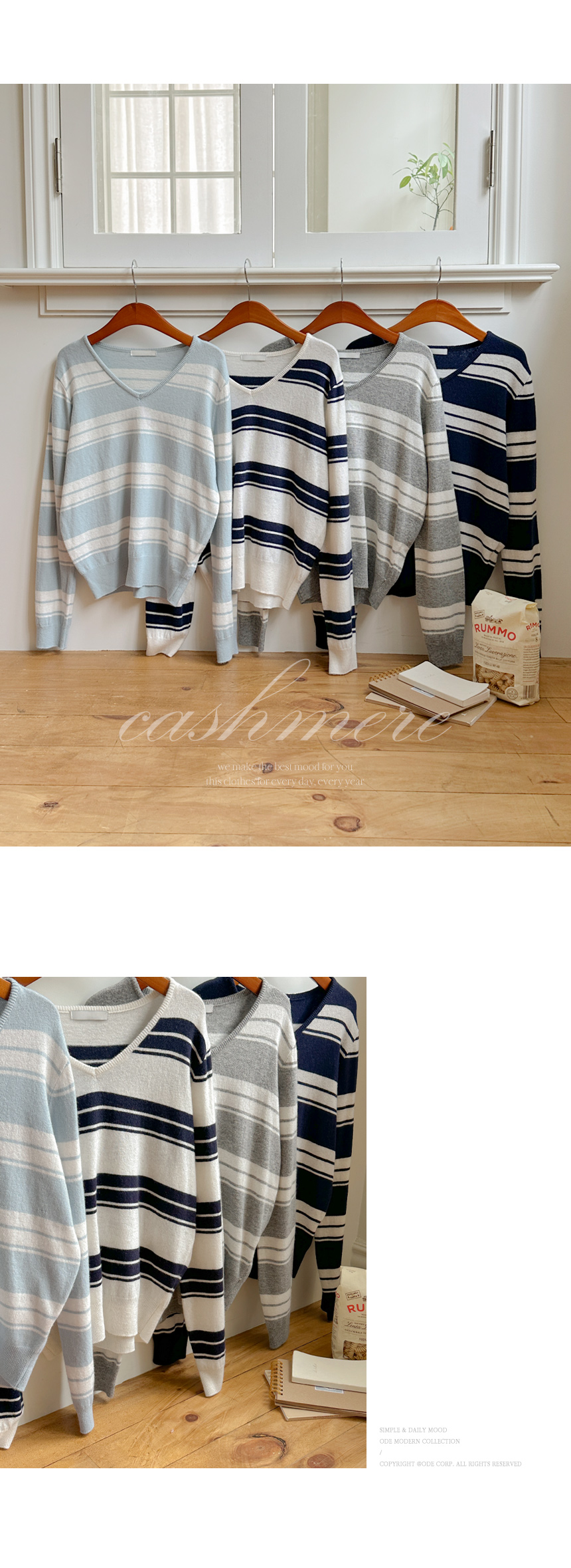 羊绒&羊毛 横条纹 V领 针织衫
