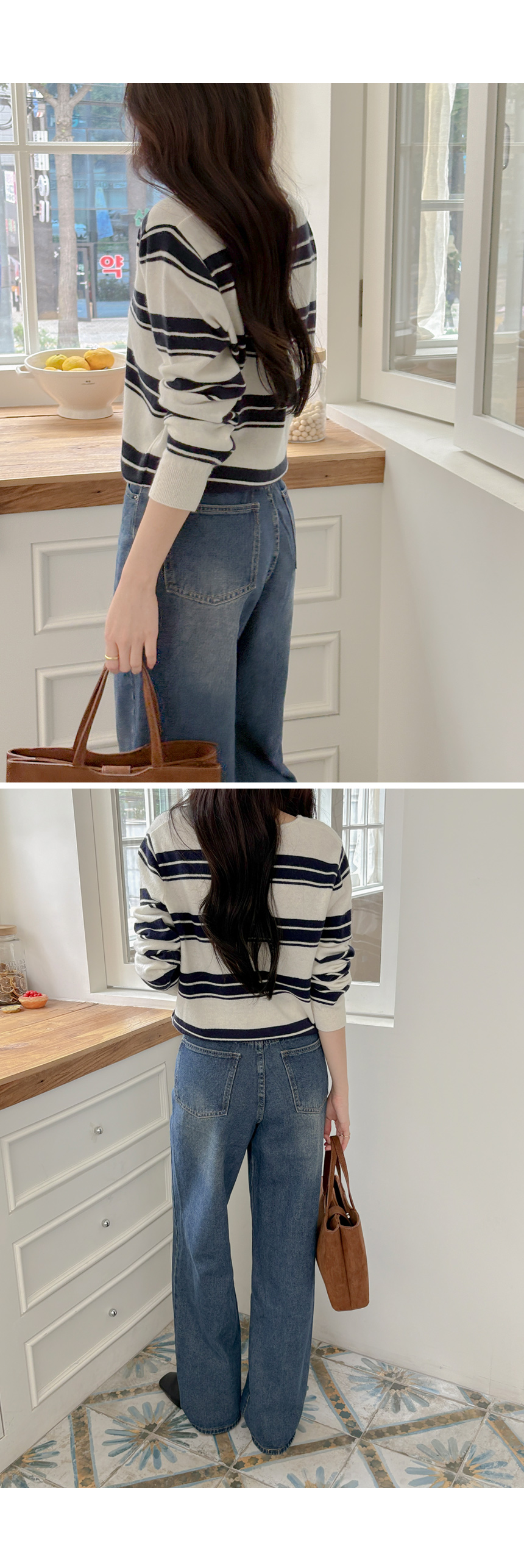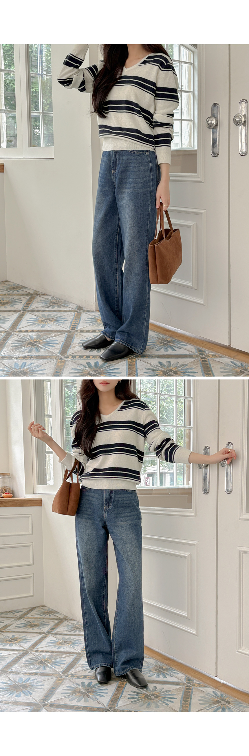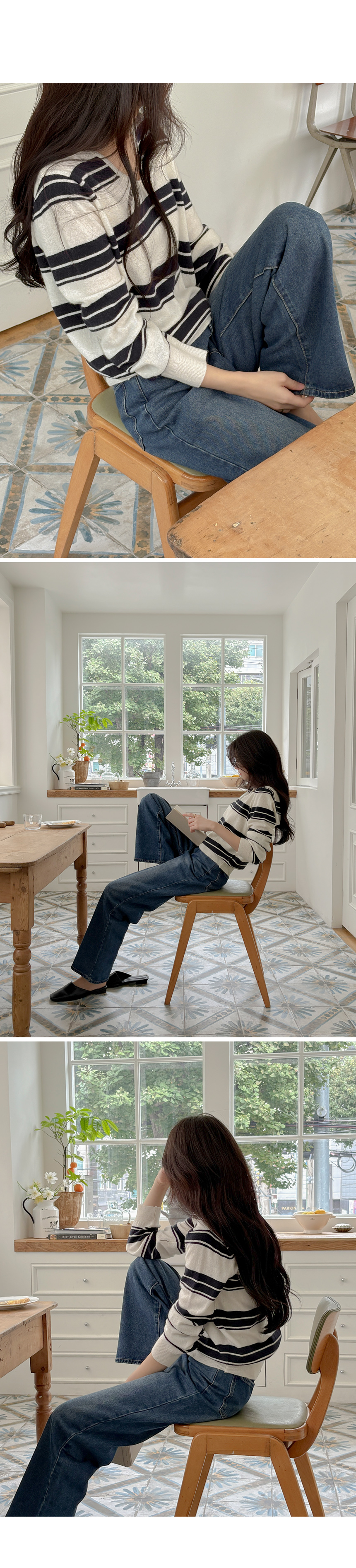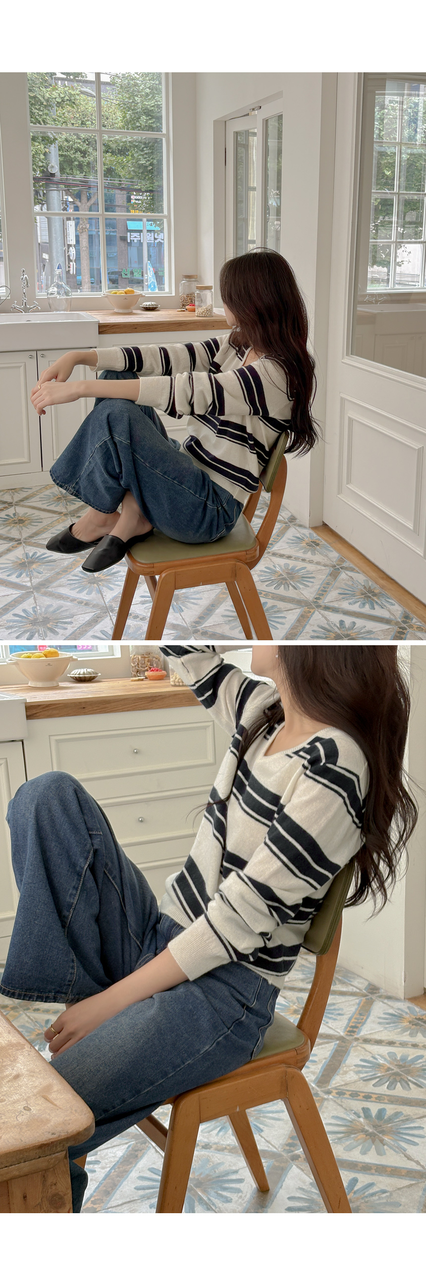 羊绒&羊毛 横条纹 V领 针织衫