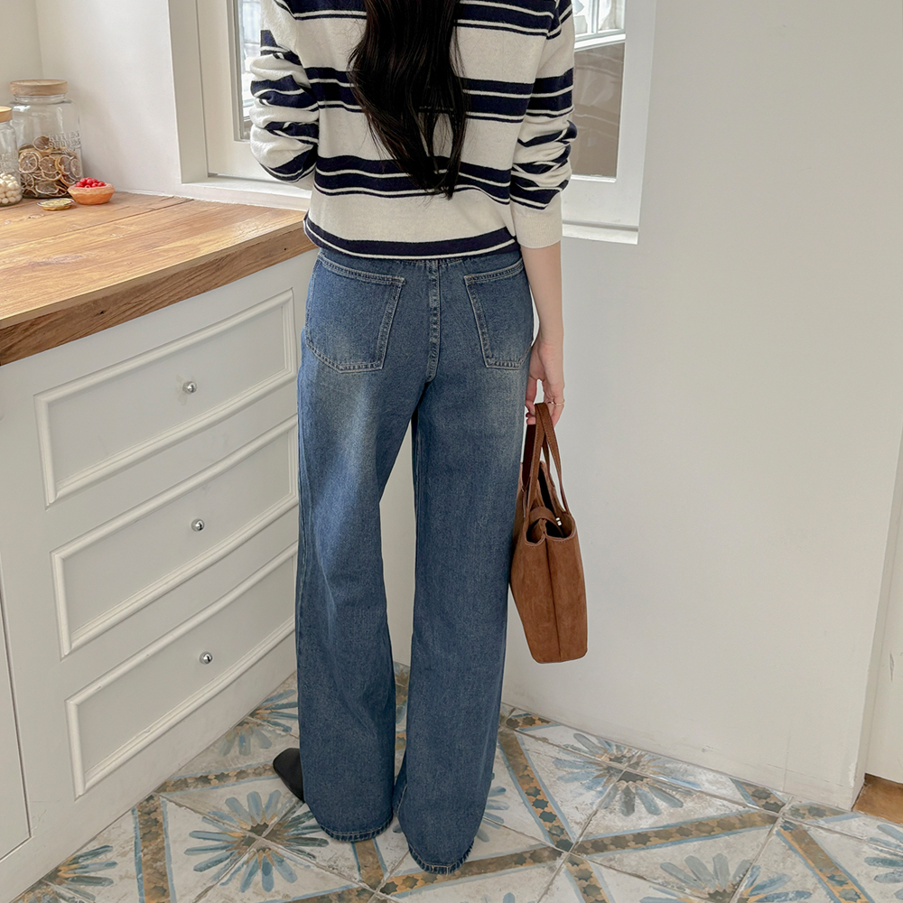 全长 修理 NO! T 休闲风格 宽绰 牛仔色 裤子 (短/中跟/长款ver)
