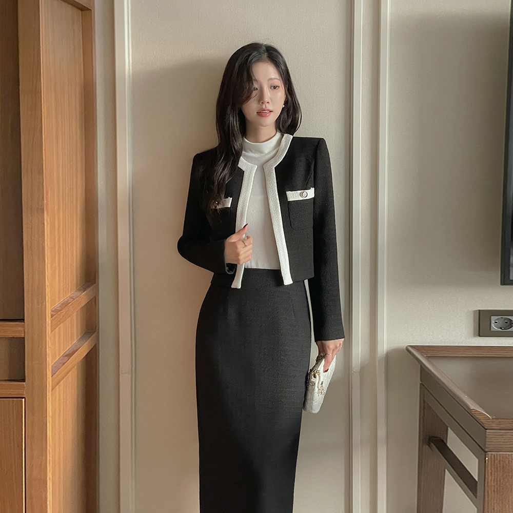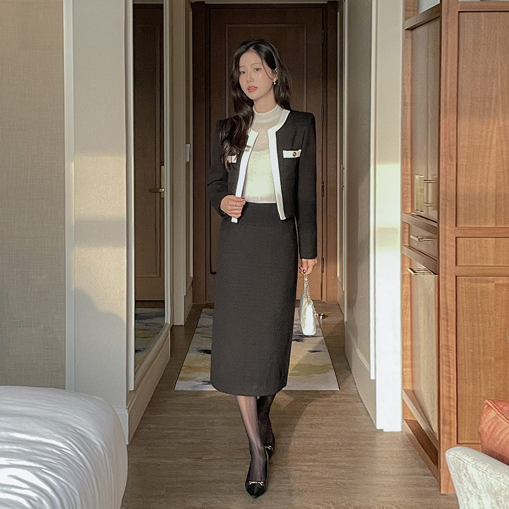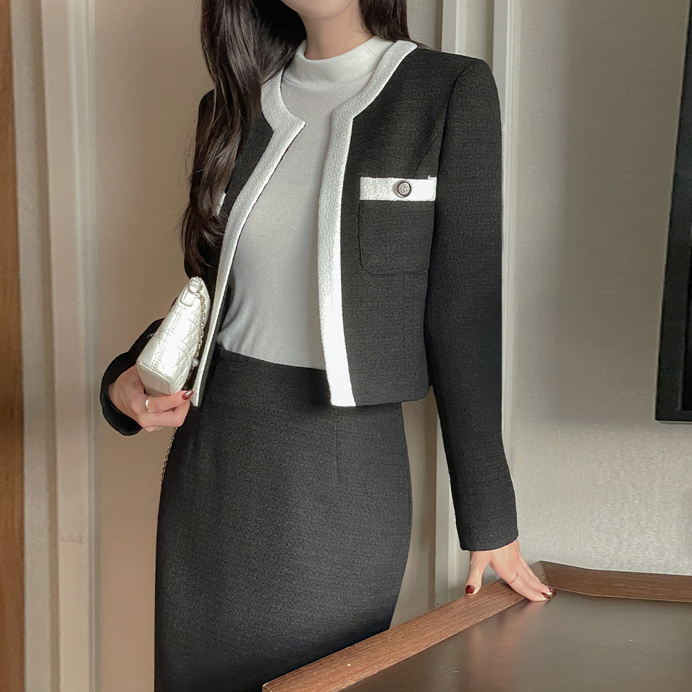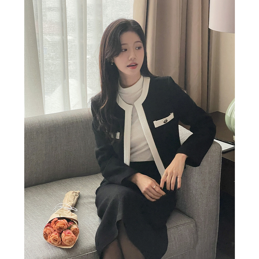 古典 配色 珍珠 粗呢 Set-up 夹克
