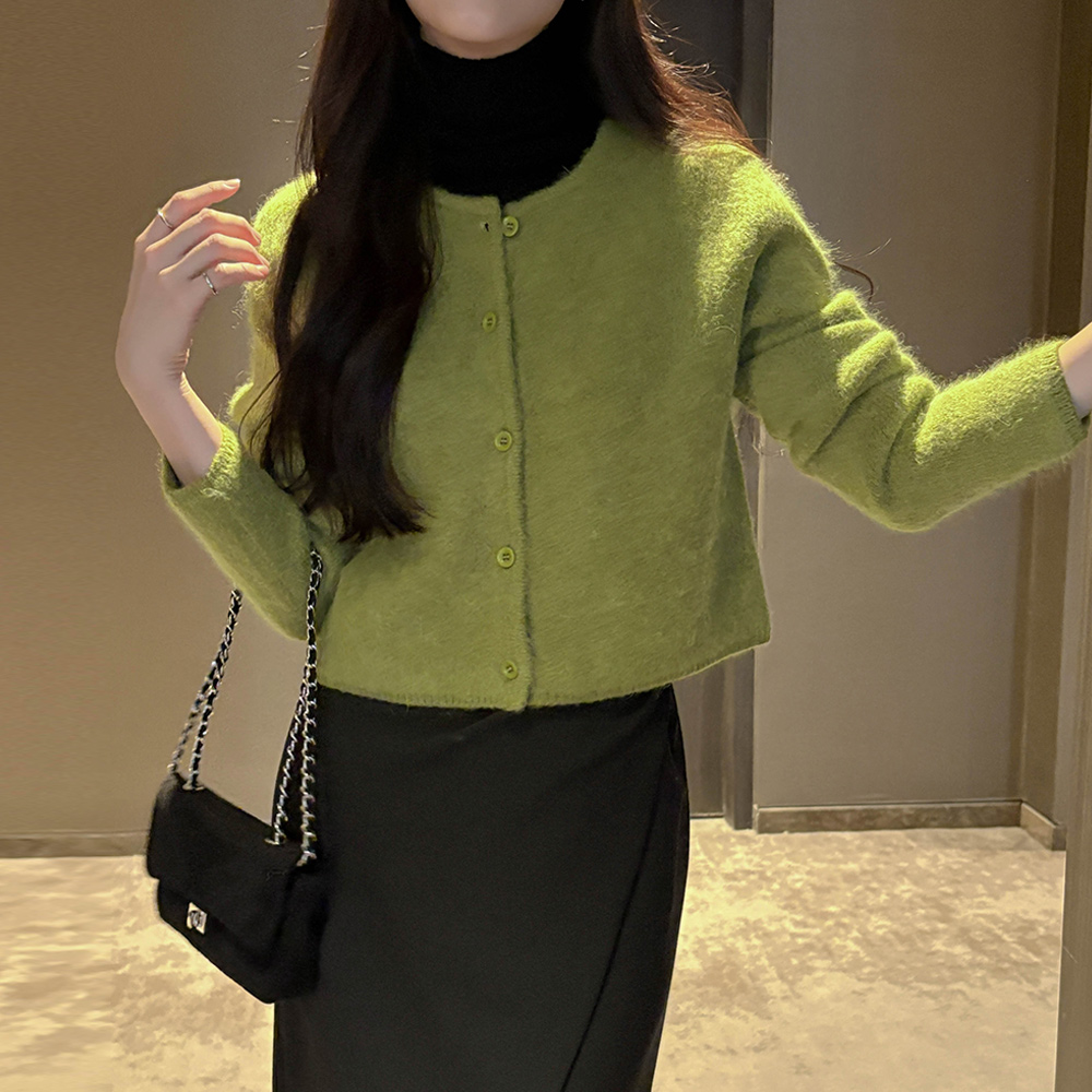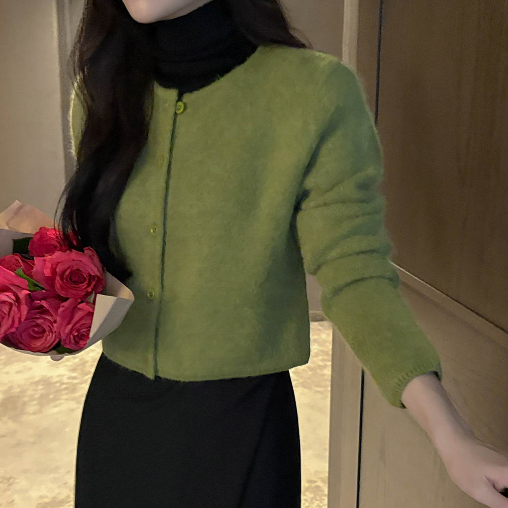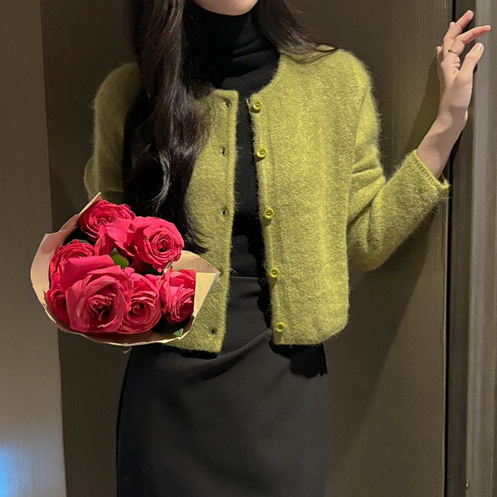 安哥拉 蓬松。 颜色 圆领 开衫