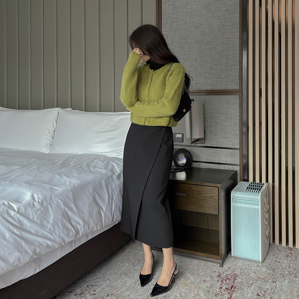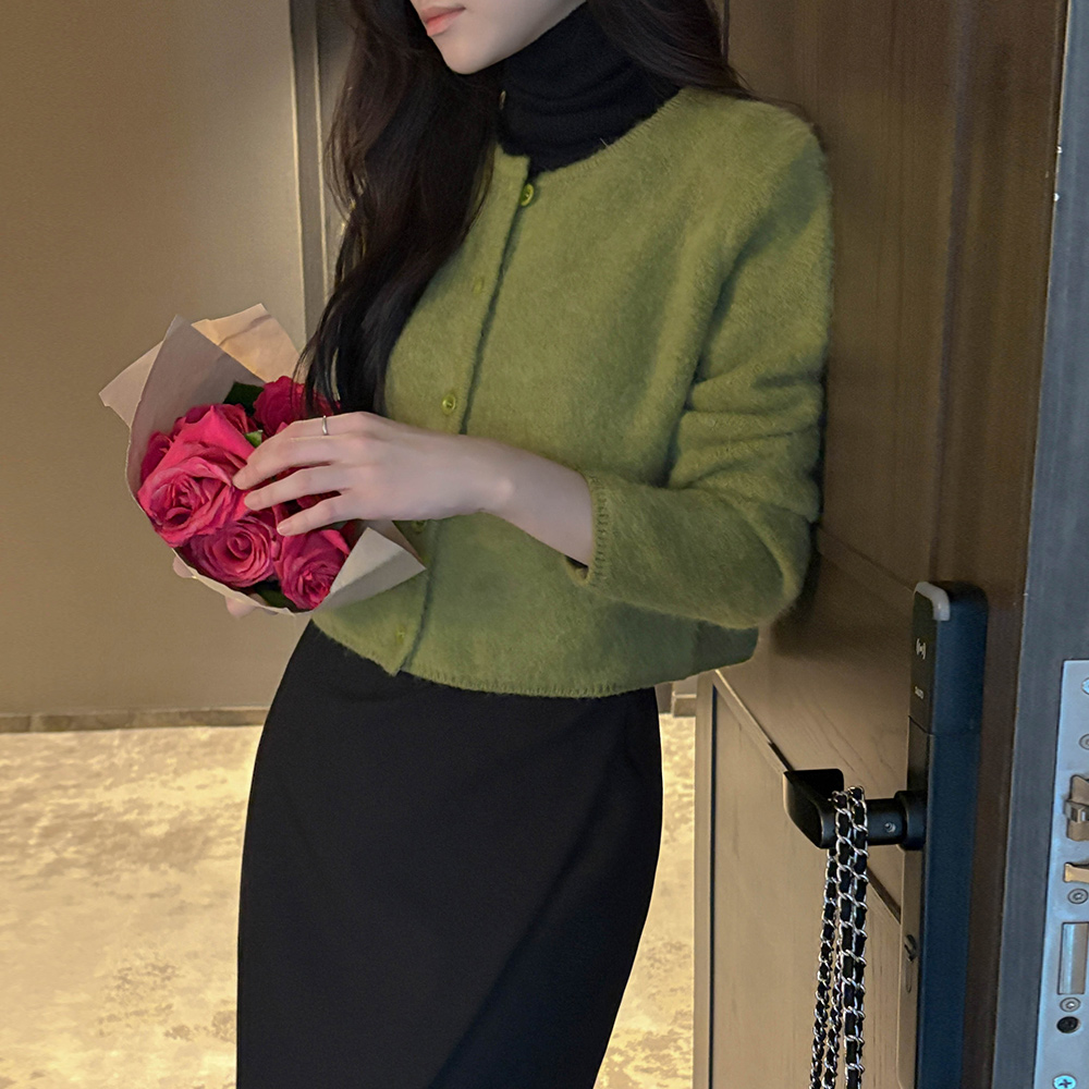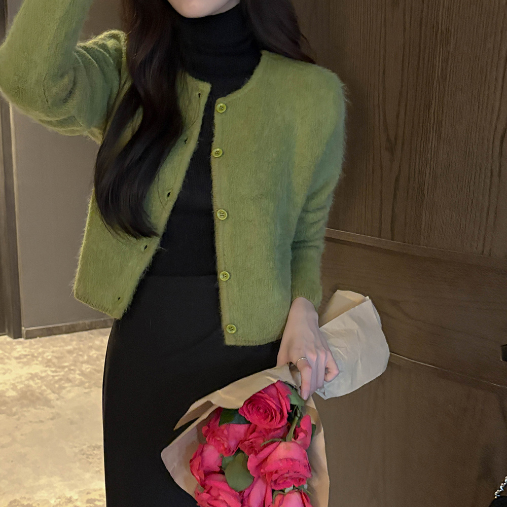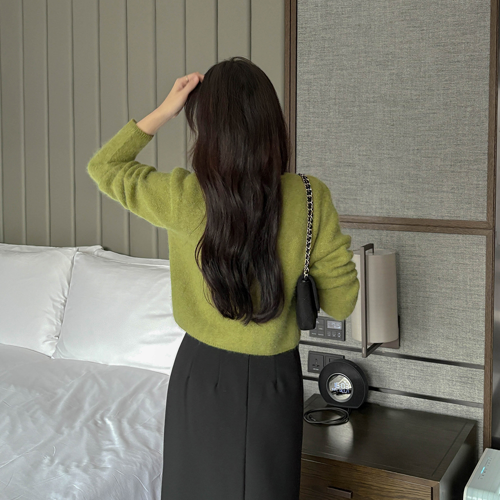 安哥拉 蓬松。 颜色 圆领 开衫