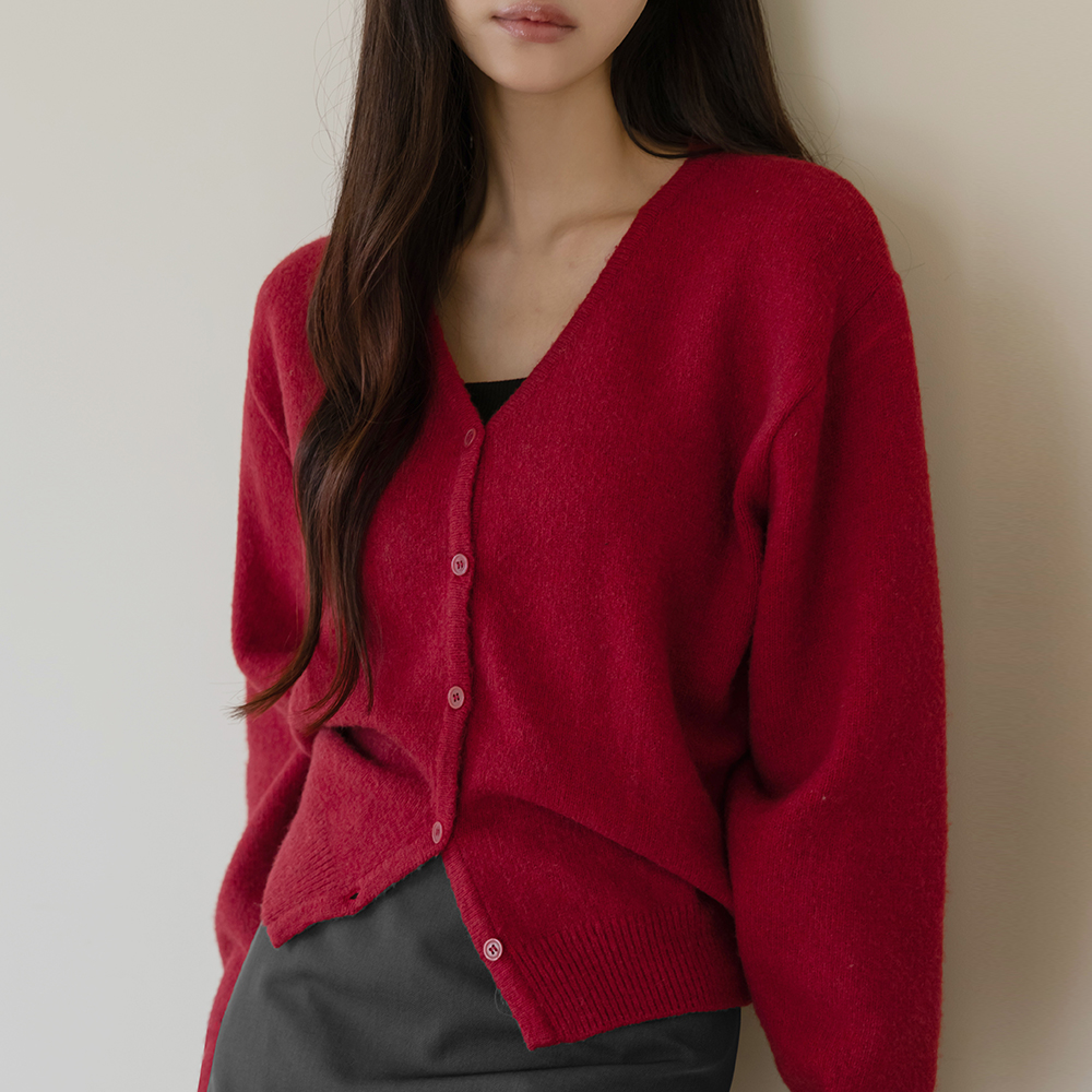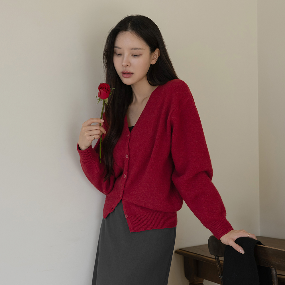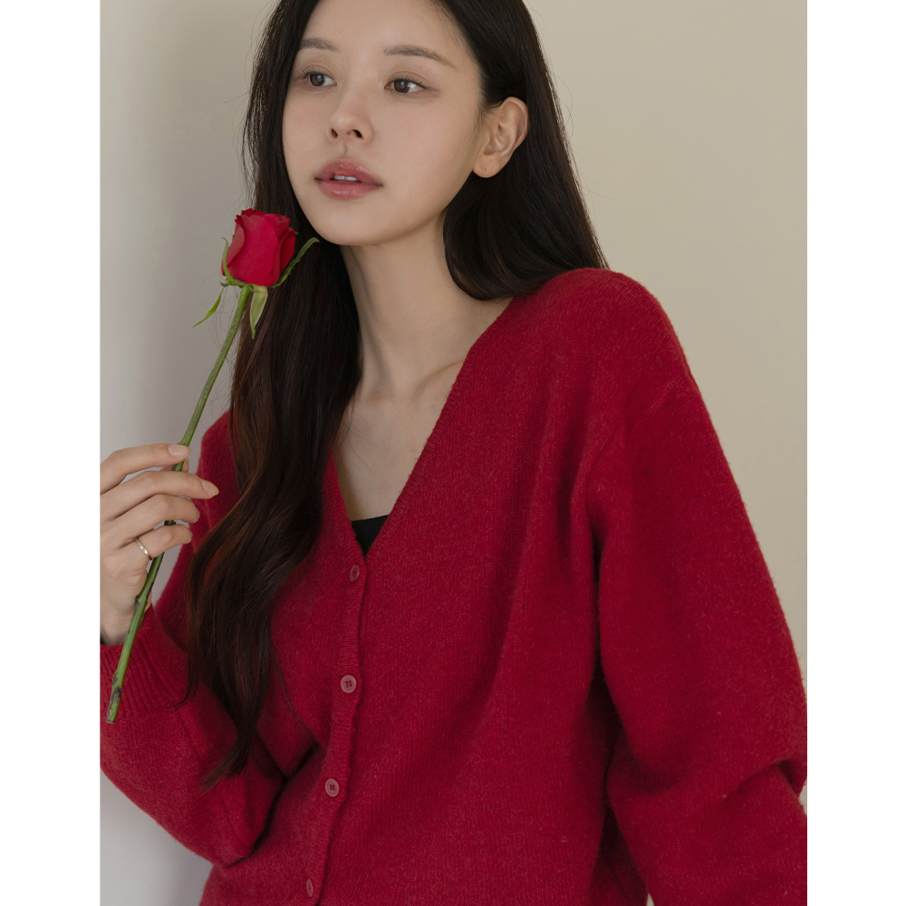 色彩艳丽 V领 羊毛 针织衫 开衫