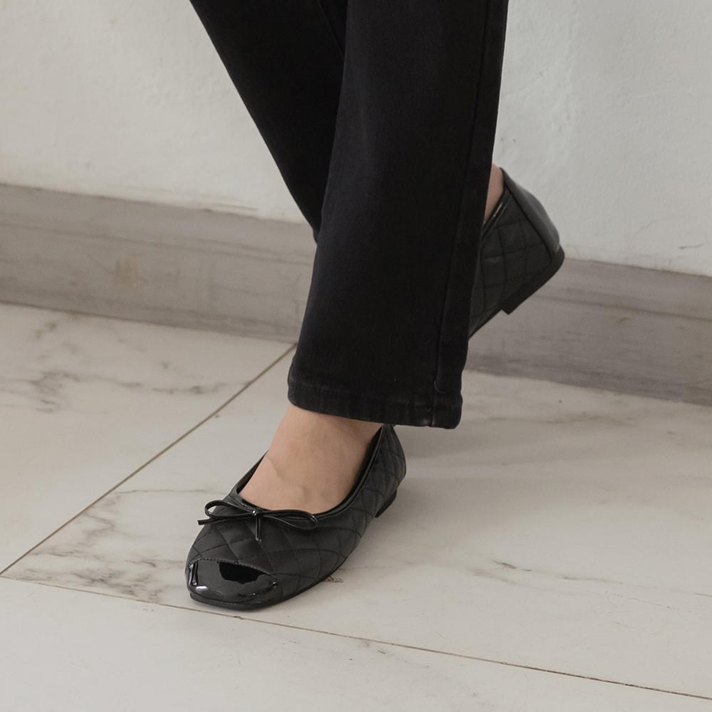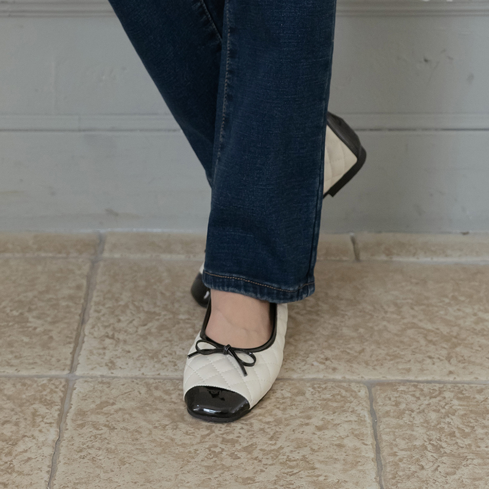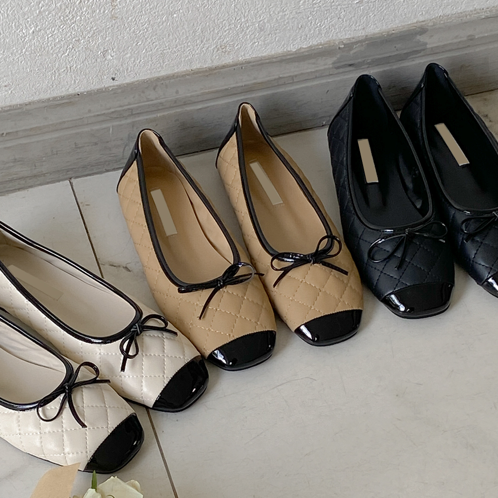 蝴蝶结 钻石 绗缝 配色 平底鞋