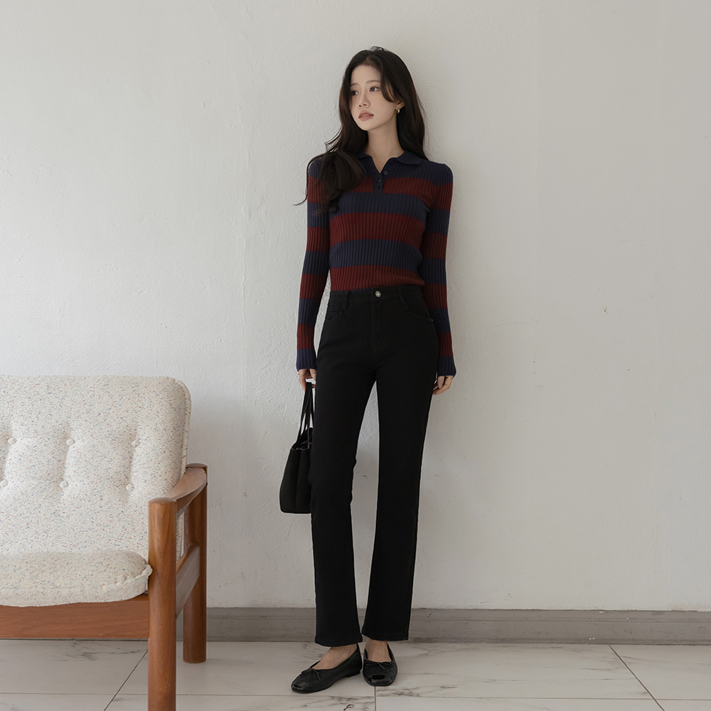 翻领 扣子 横条纹 条绒 针织衫