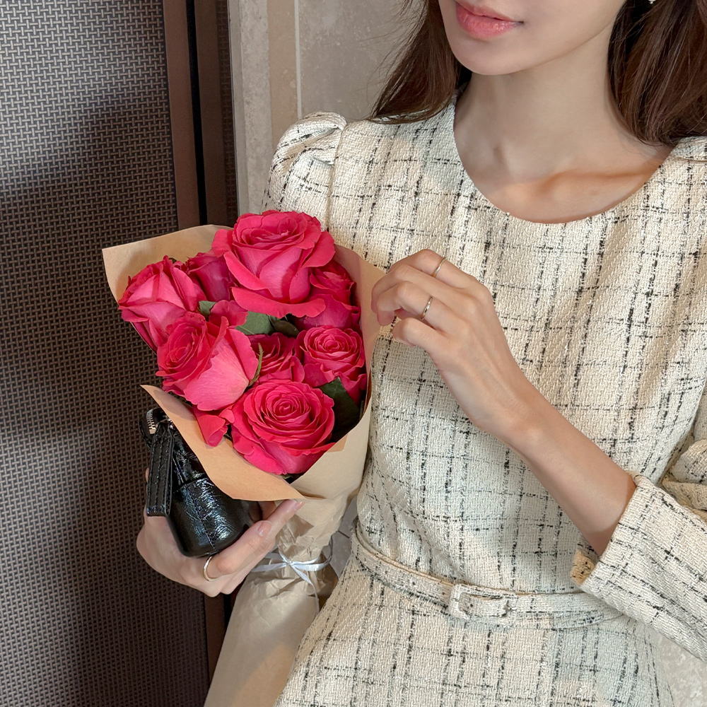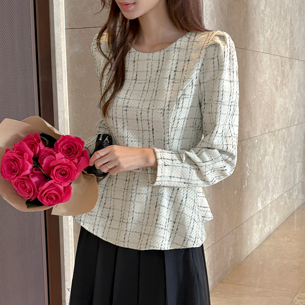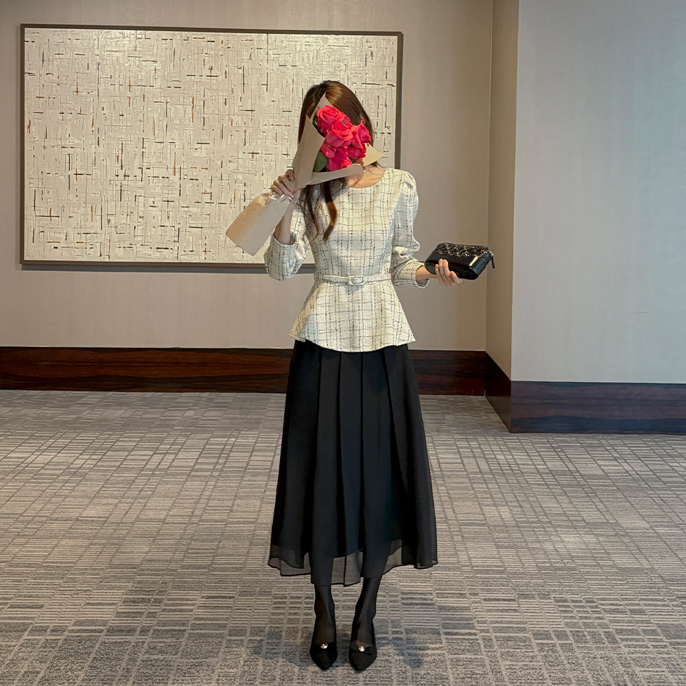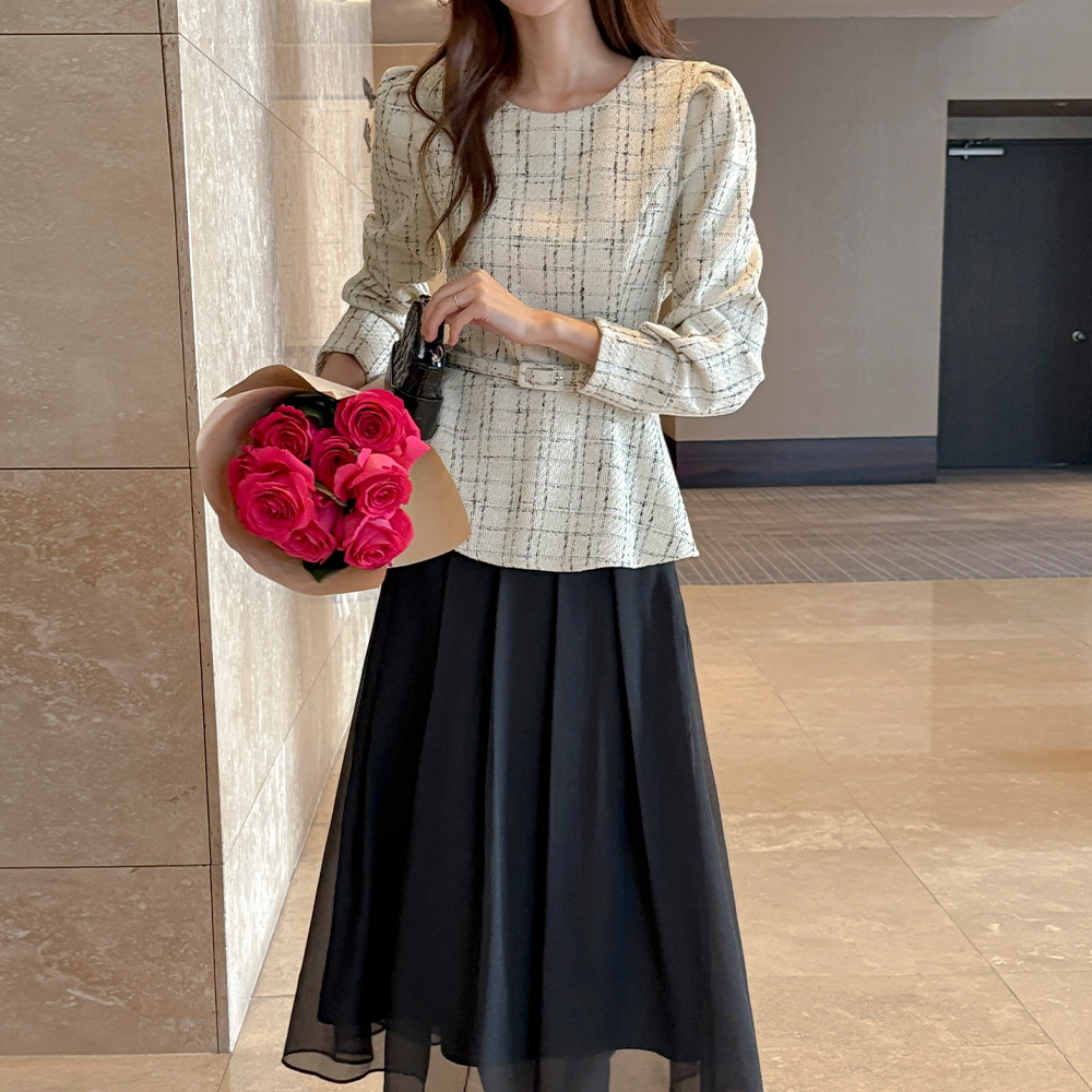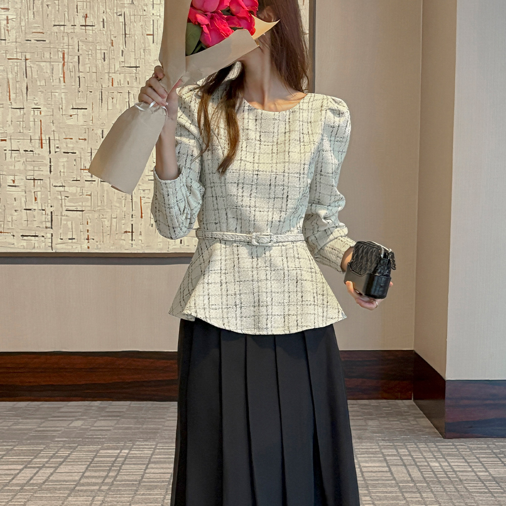 格子 粗呢 荷叶边 罩衫(+腰带)