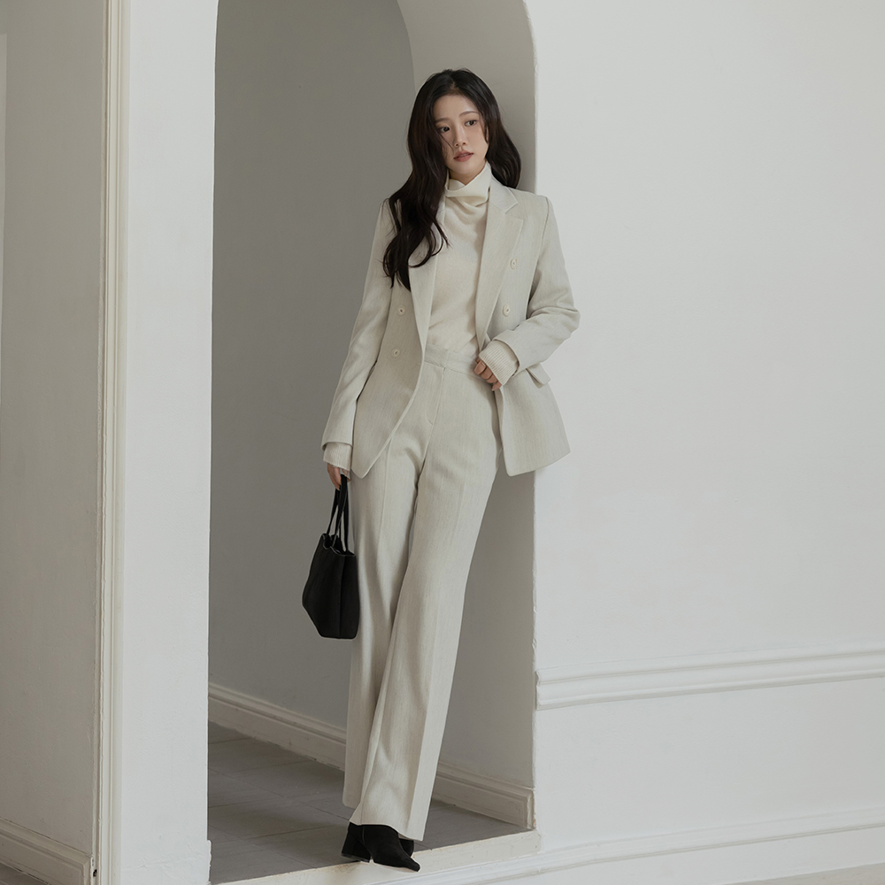 古典 一字型 羊毛 Set-up 宽松长裤