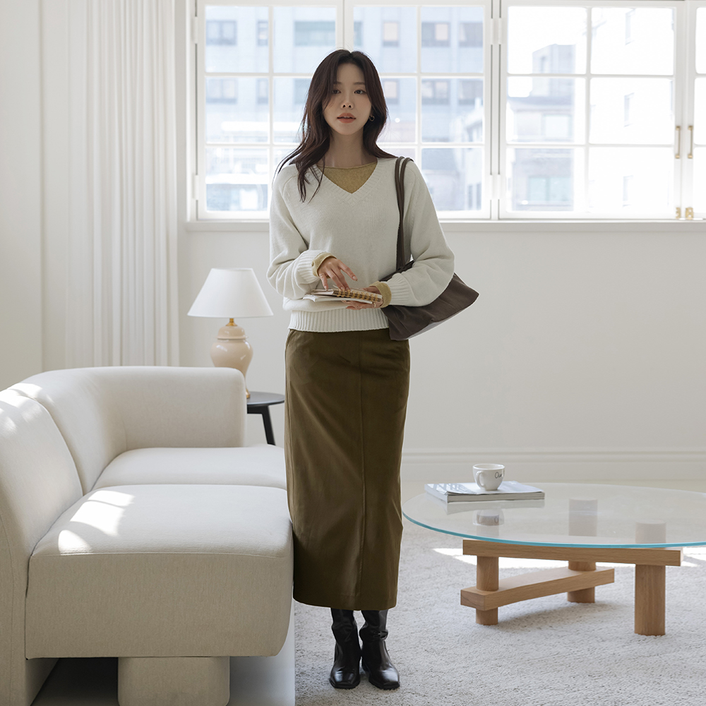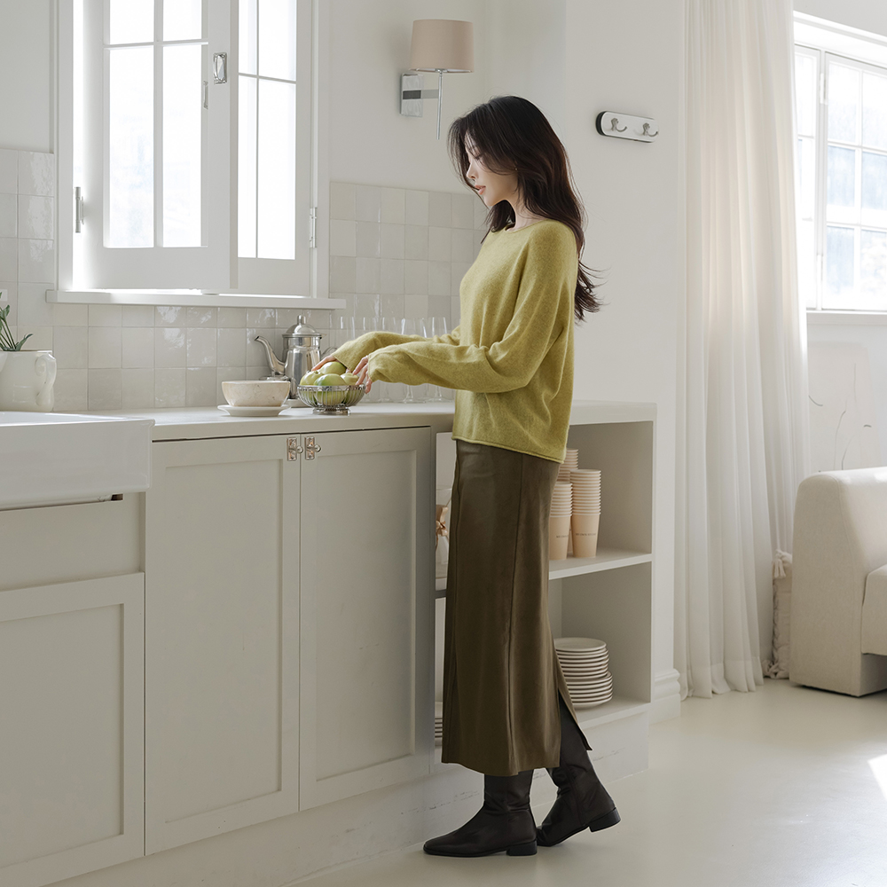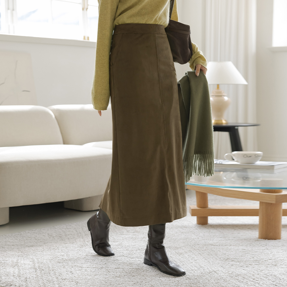 日常 翻毛皮 H字型 长款 裙子