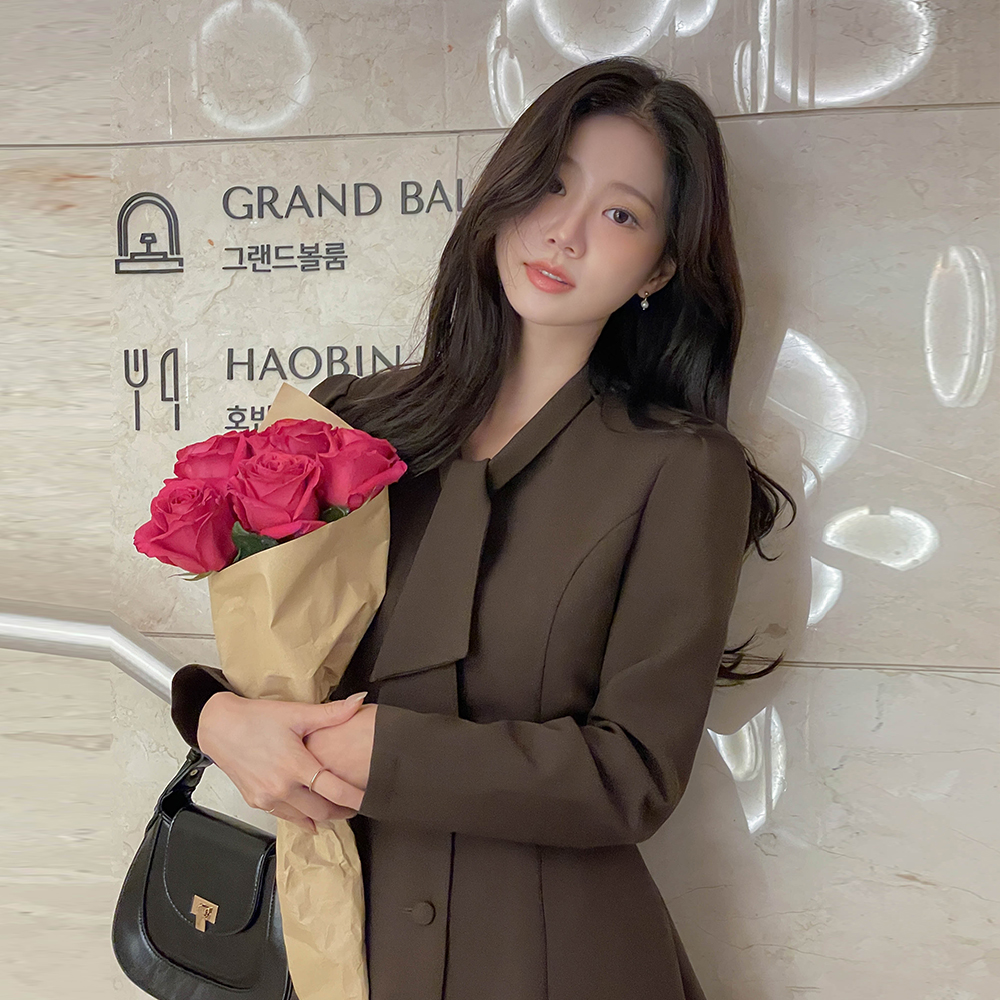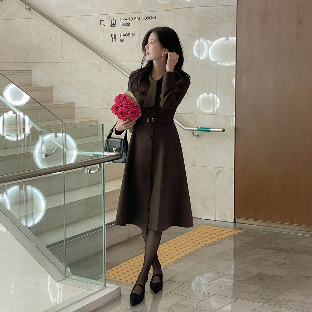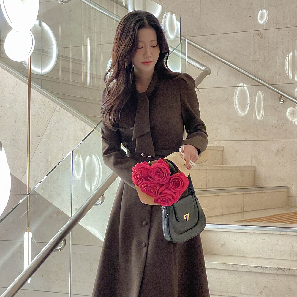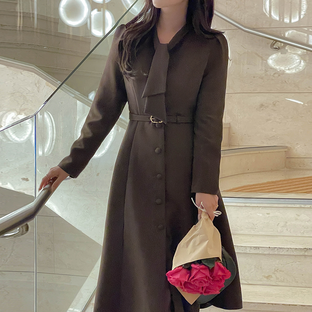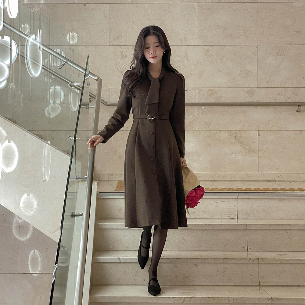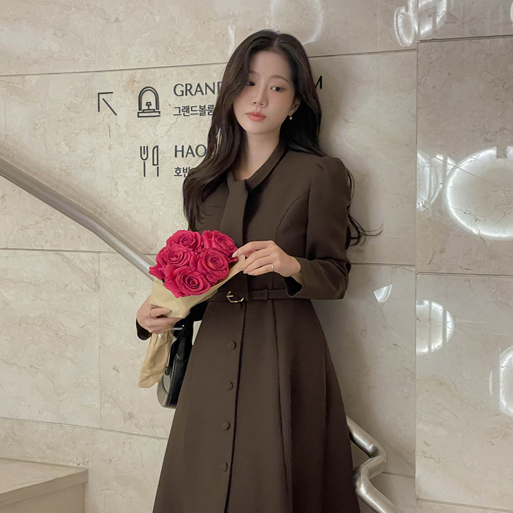 领带 泡泡袖 A字型 连衣裙(+腰带)