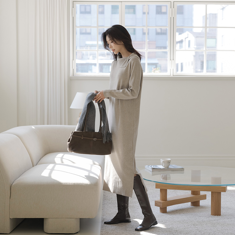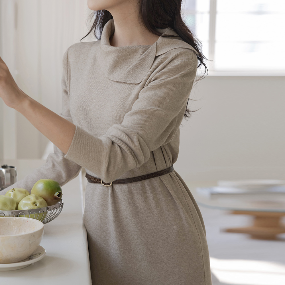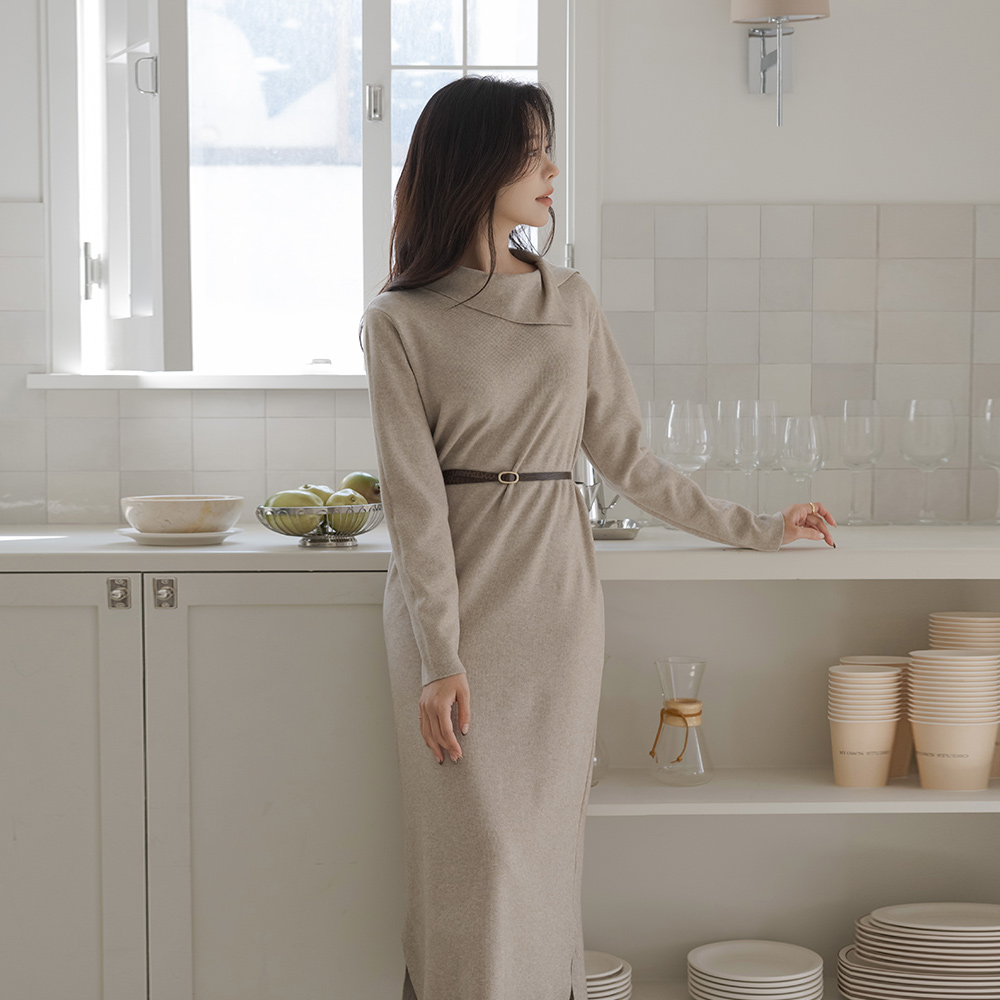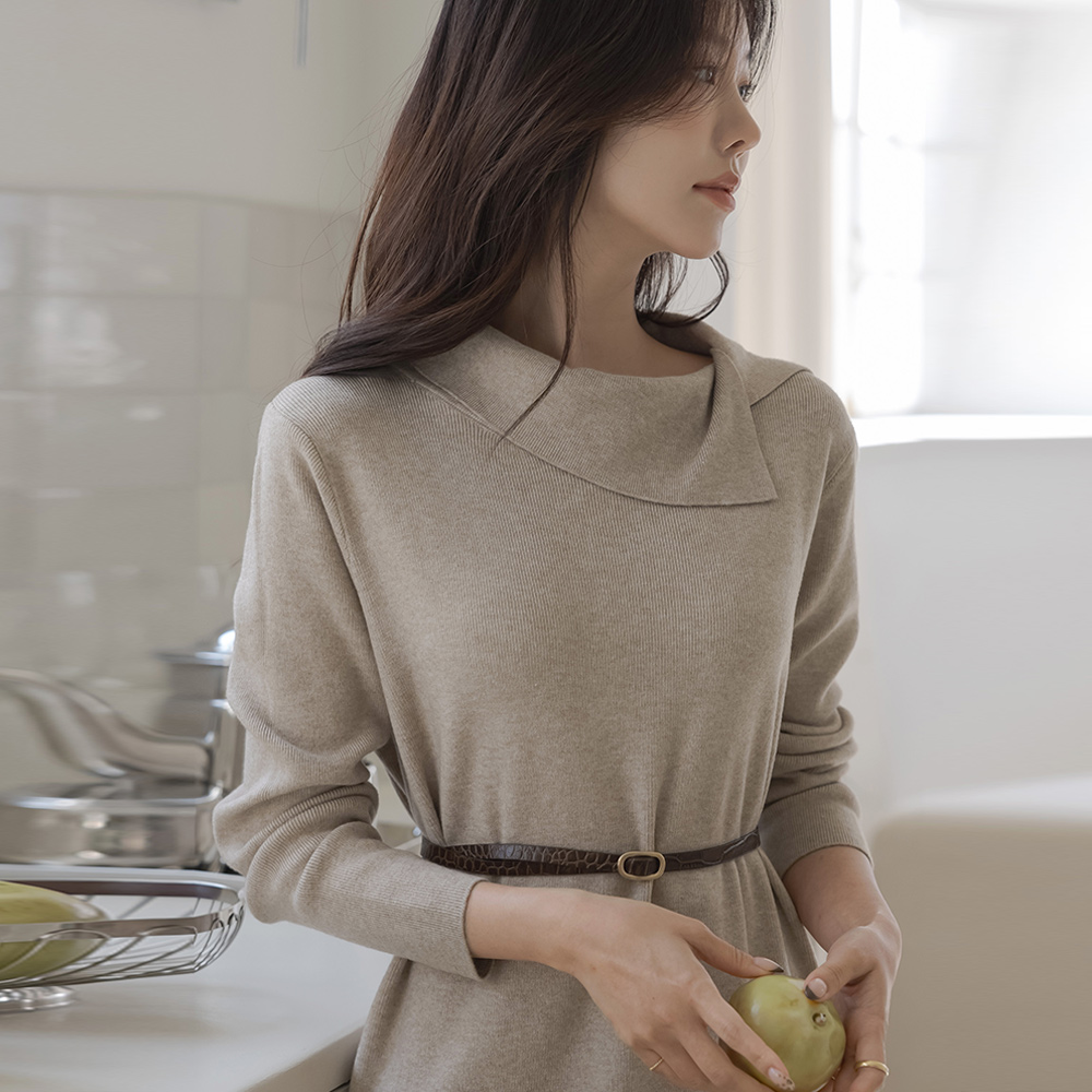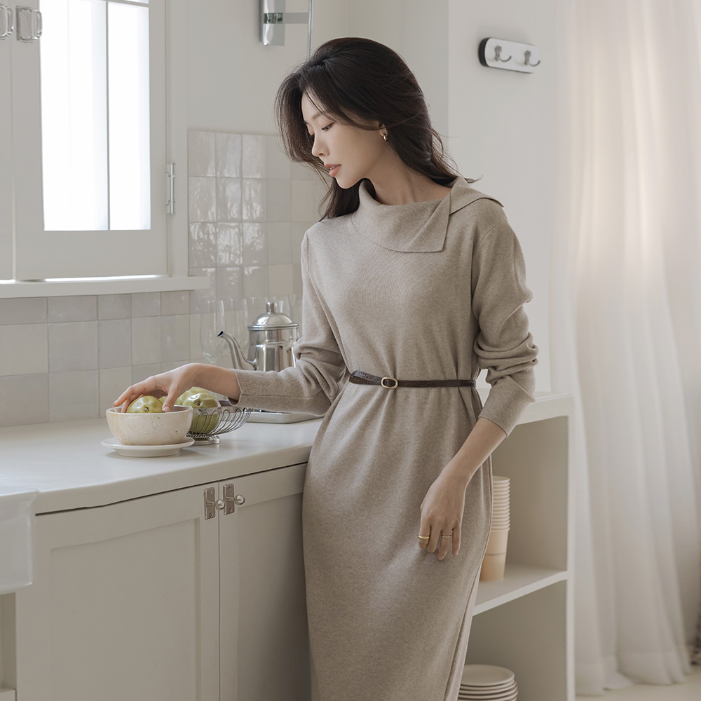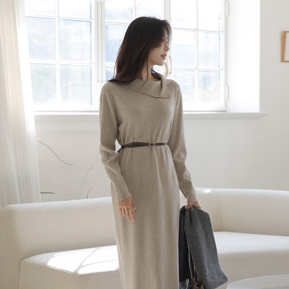 不规则 翻领 舒适的 长款 针织衫 连衣裙